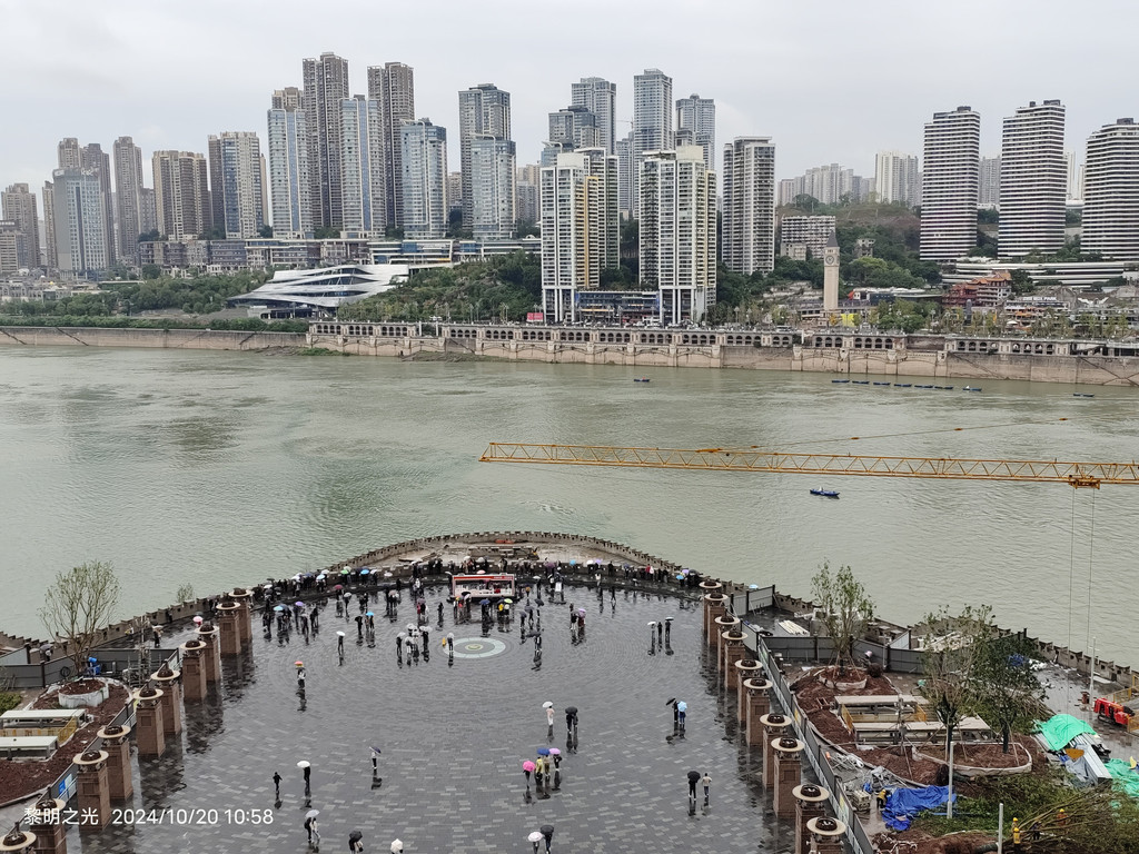 进入来福士来到购物中心,这里汇聚了众多国际知名品牌,从时尚服饰到精致美食,应有尽有,我们购买了几件心仪的衣服,来到了5楼观景台,这里有喷泉、有雕塑。站在观景台上,眼前是朝天门码头,长江和嘉陵江互相交汇,远处的楼房层层叠叠,形成了一幅漂亮的油画。