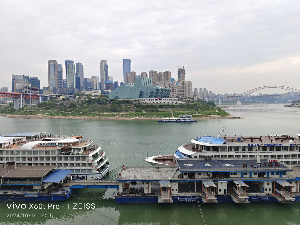 12:00多乘地铁返回穆斯林大厦,在庆聚斋再一次品尝了火锅。14:30左右坐地铁到达朝天门,这里是长江和嘉陵江“两江交汇处”,也是重庆主要的交通码头,两江江面上各种游轮、观光船、货船等来来往往,四周高楼林立,如诗如画!