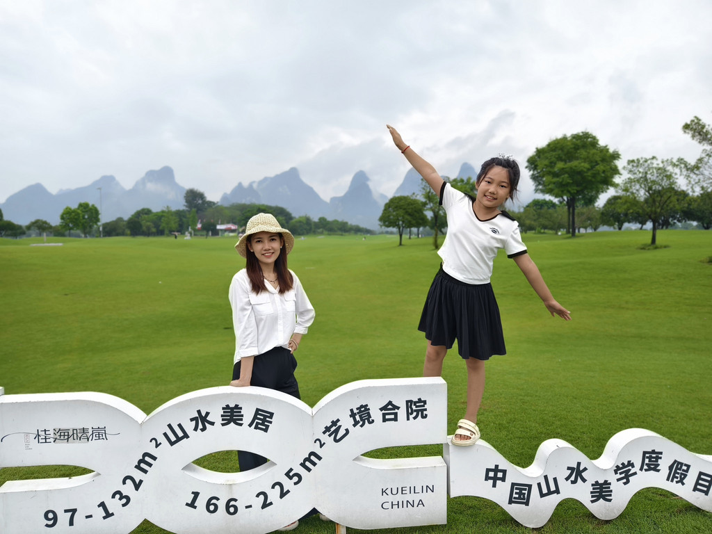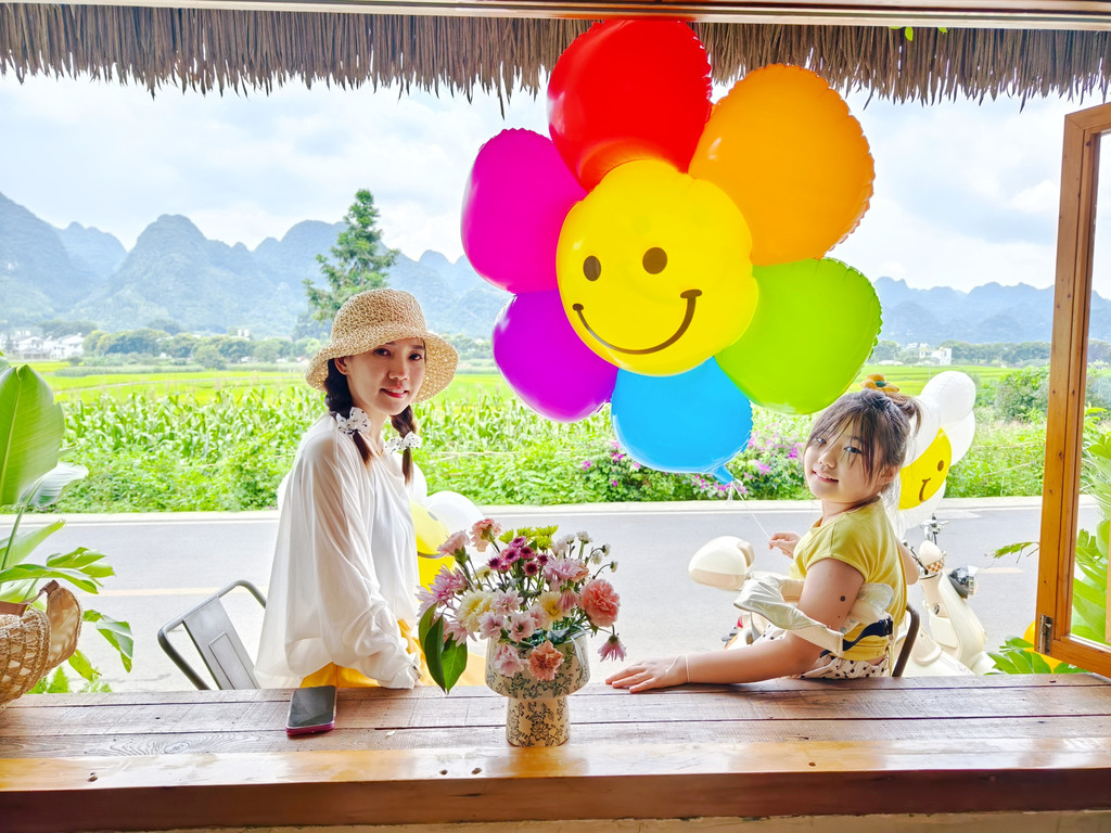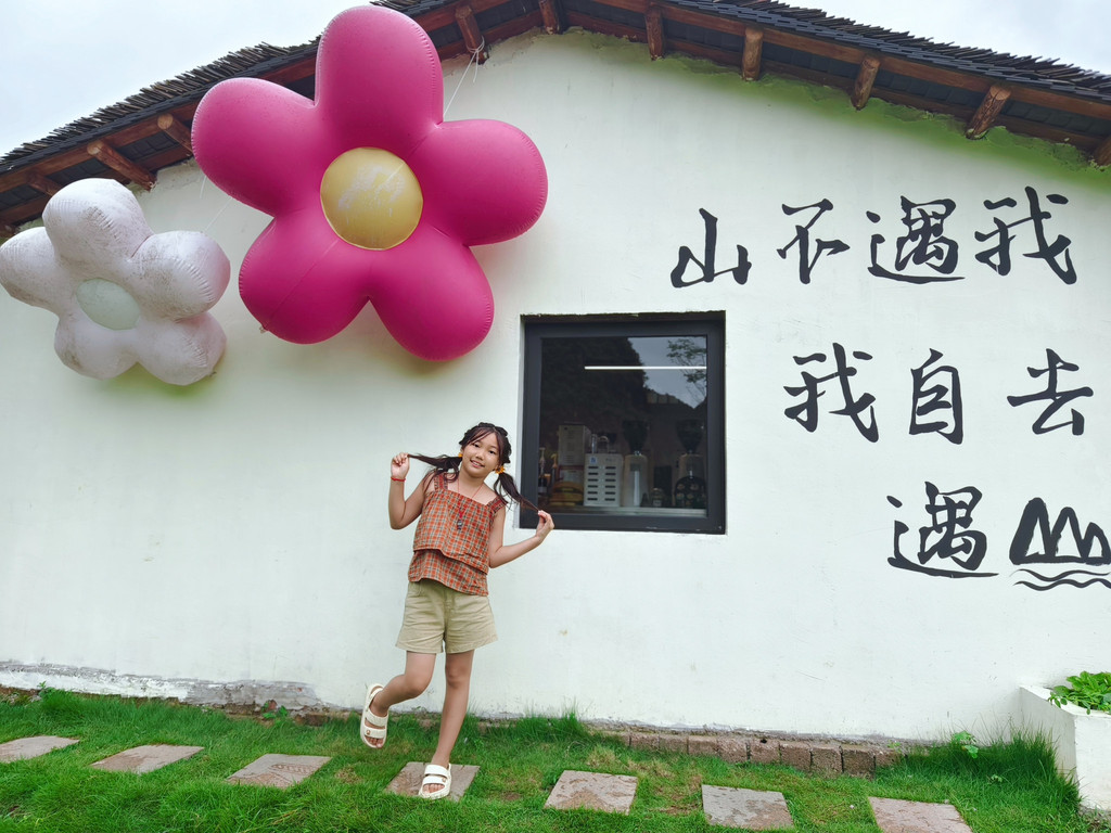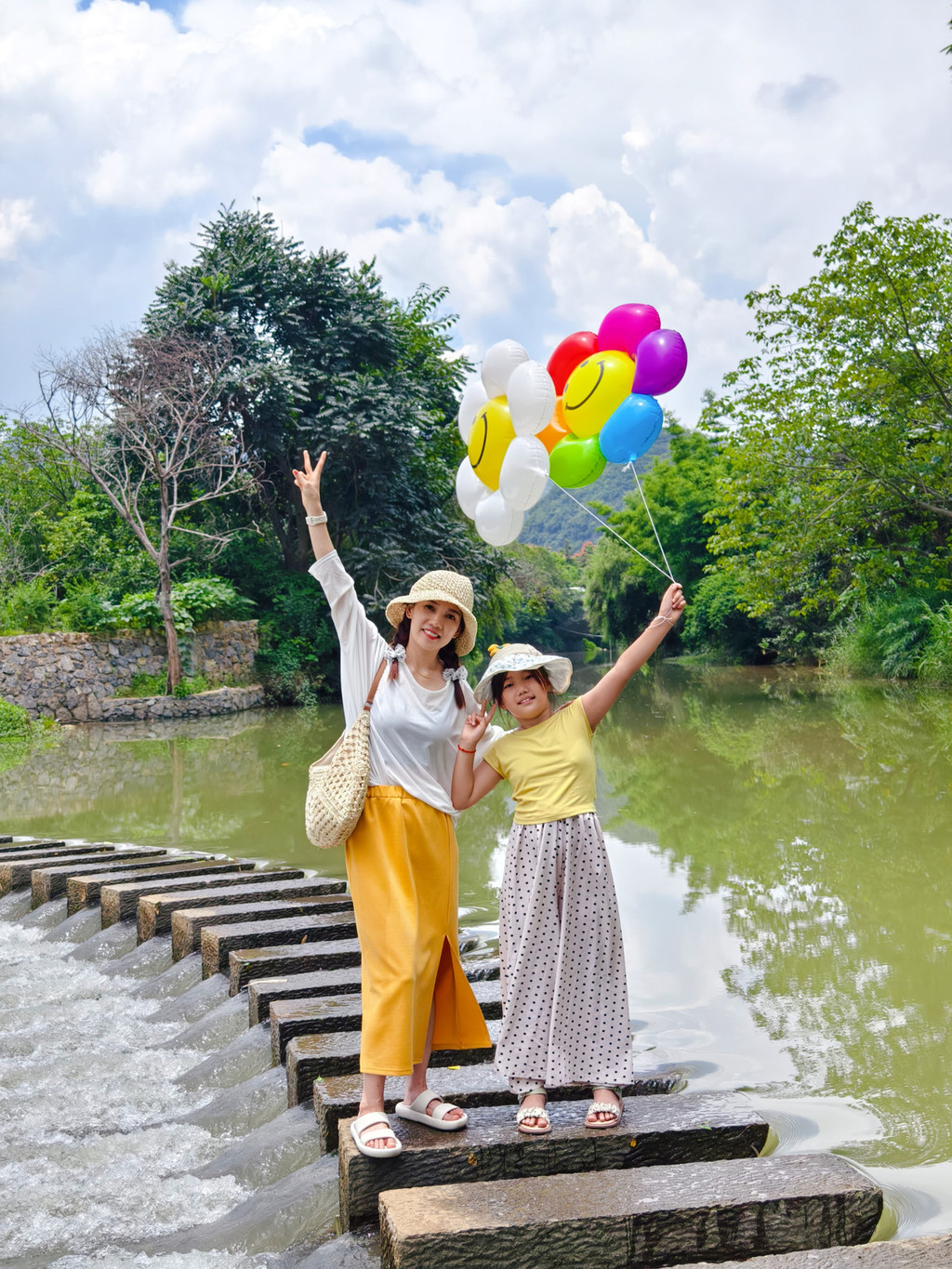 今天预定的是遇龙河附近的一家民宿,也是在网上找了很久,从露台能看到漂亮的山景,院子里还带了露天的泳池,因为刚下过大雨,泳池的水不太干净,就没有让孩子下去游泳。