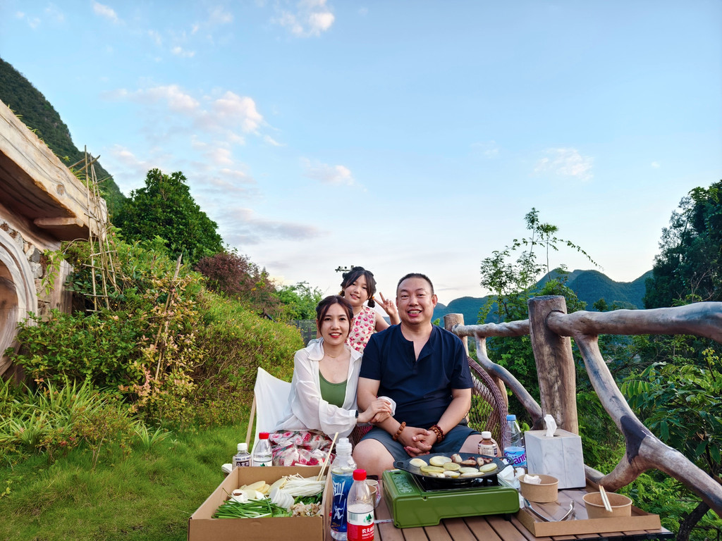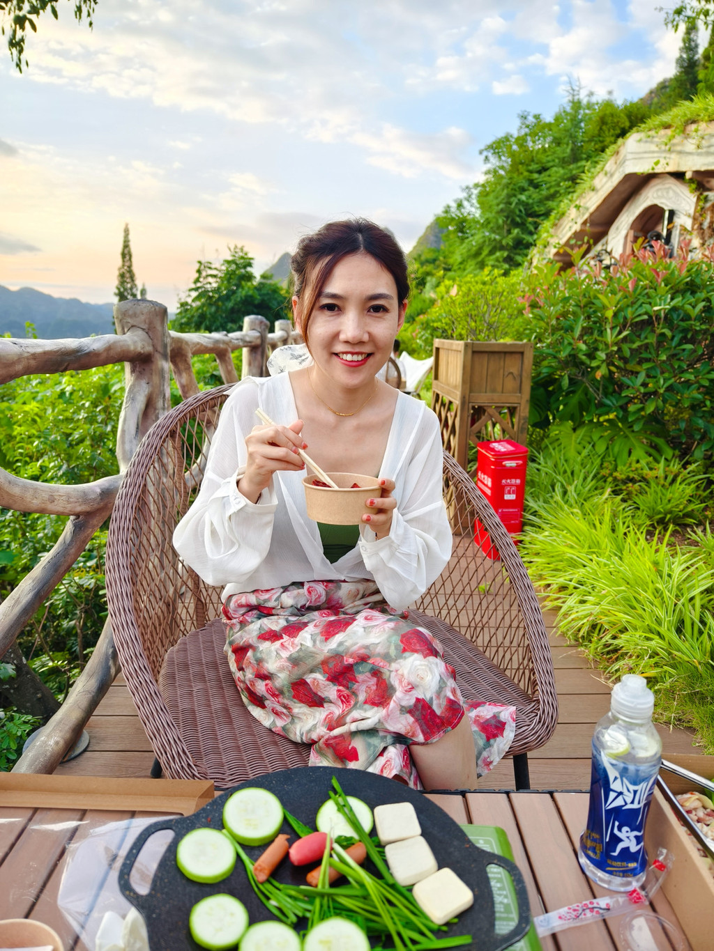 民宿包含晚餐和早餐,晚上可以选择火锅和烧烤,可以在自己的房间外的餐桌坐上吃饭。这个时候正好赶上夕阳西下,在童话般的世界里,吃着烧烤,看着夕阳,真的是太惬意了,真的想时间就定格在这一刻。直到天完全黑了,才不舍的进入房间。