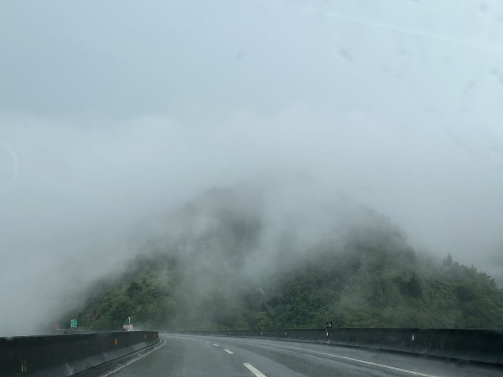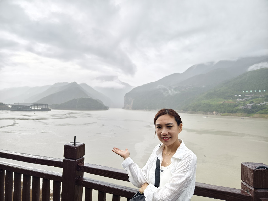 今天早起看到外面的雨一直没有停,山顶上云雾缭绕,感觉到了三峡之巅也什么都看不清,所以打算去白帝城景区逛一逛。在去景区的路边有一个十元人民币背景观景台,从这里看的景色比景区还要清楚。到了白帝城景区停车场,雨下的更大了,这种情况下进去玩的体验感也不好,既然该看的景色也打卡了,所以决定放弃进景区,直接开车出发去重庆市区。