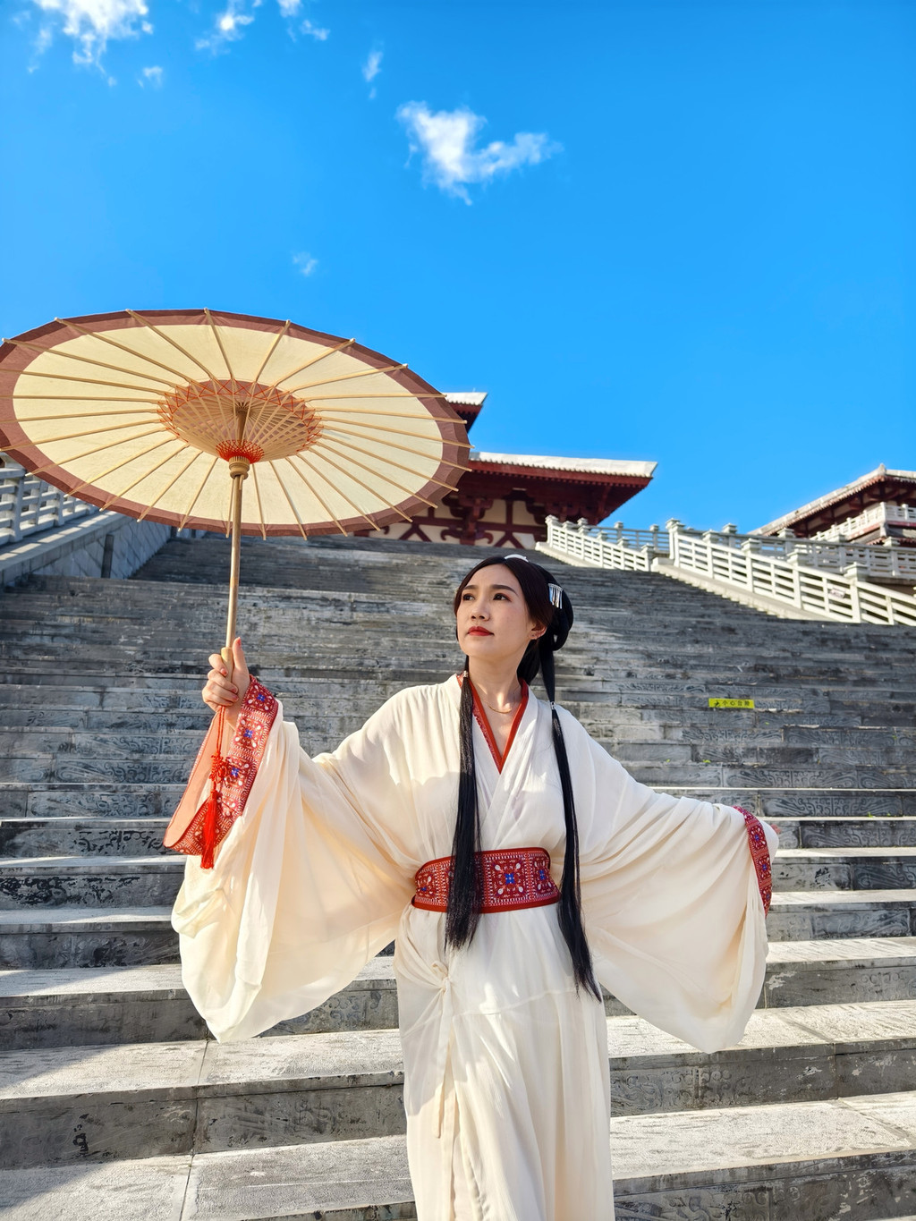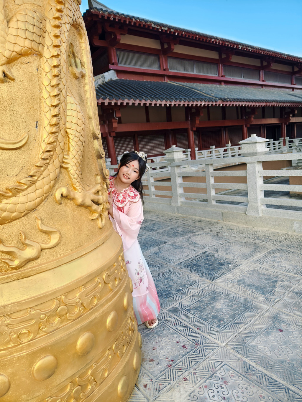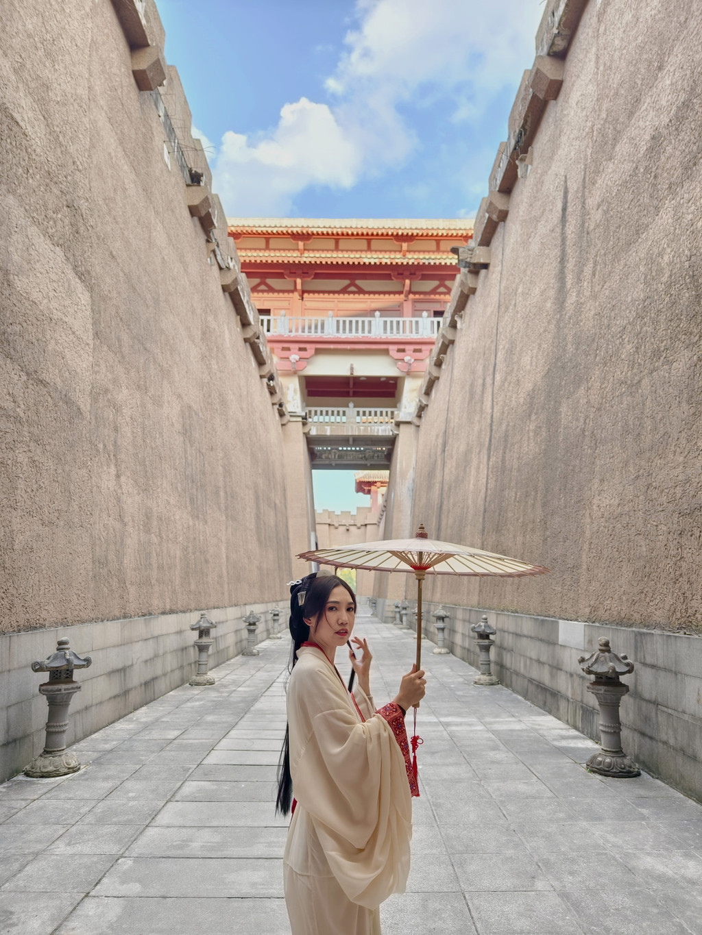 换装后在置身于这一座座建筑中,感觉自己穿越到了秦汉时期。今天老公拍的照片角度找的也非常不错,感觉不输于专业摄影师。