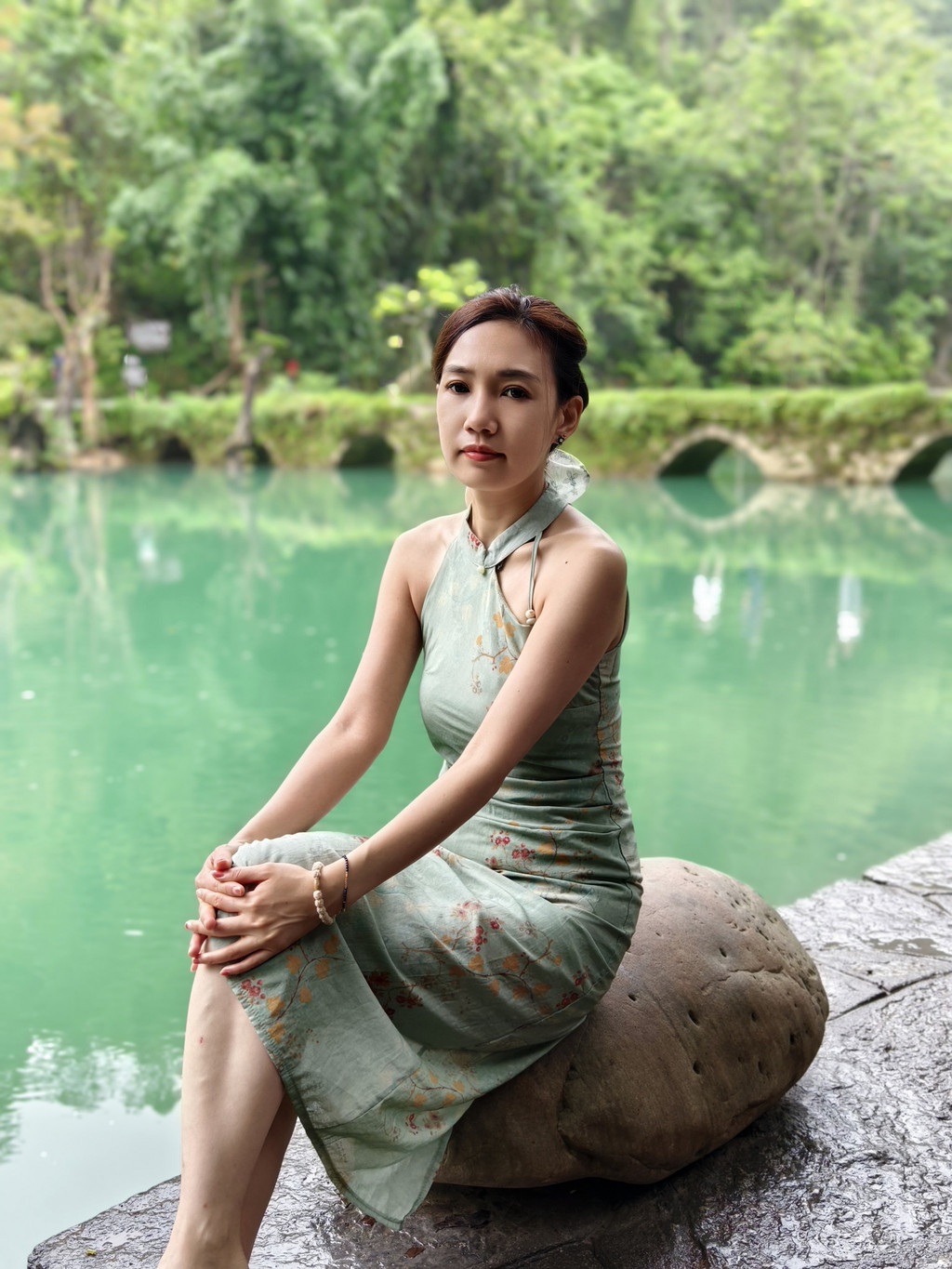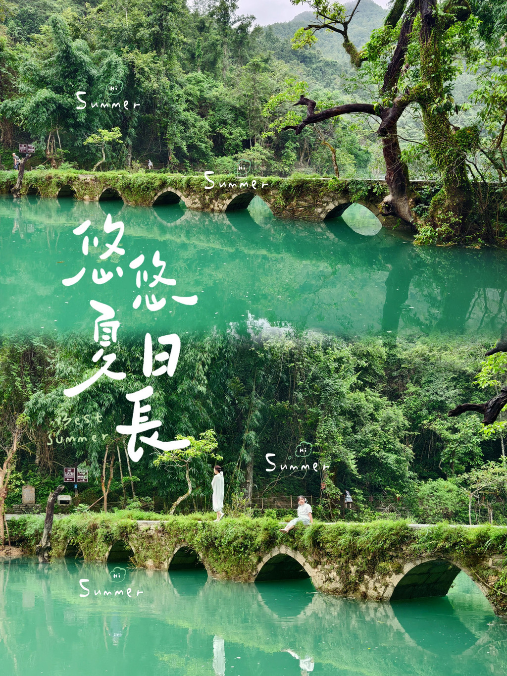 记得很多年前,我从网上看到一个照片,拍摄地点就是荔波的小七孔桥,碧绿清澈的河水倒映着一座古桥,如仙境一般。但是被这景色吸引,所以这次来贵州必须要来的景点就是这里。因为旅游旺季,景区每天人流量非常大,要想拍着清净的小七孔桥就必须在景区开门前,所以住在古桥旁边的酒店。听说古桥是7点开放,不到6点就起床收拾,达到门口已经有几个人在等待,开门后立刻跑去桥上,终于拍到了没有人的古桥,只可惜手机的相机不给力,远焦拍摄跟专业相机没办法比。正好人流多了以后我们拍完回酒店去吃早饭。