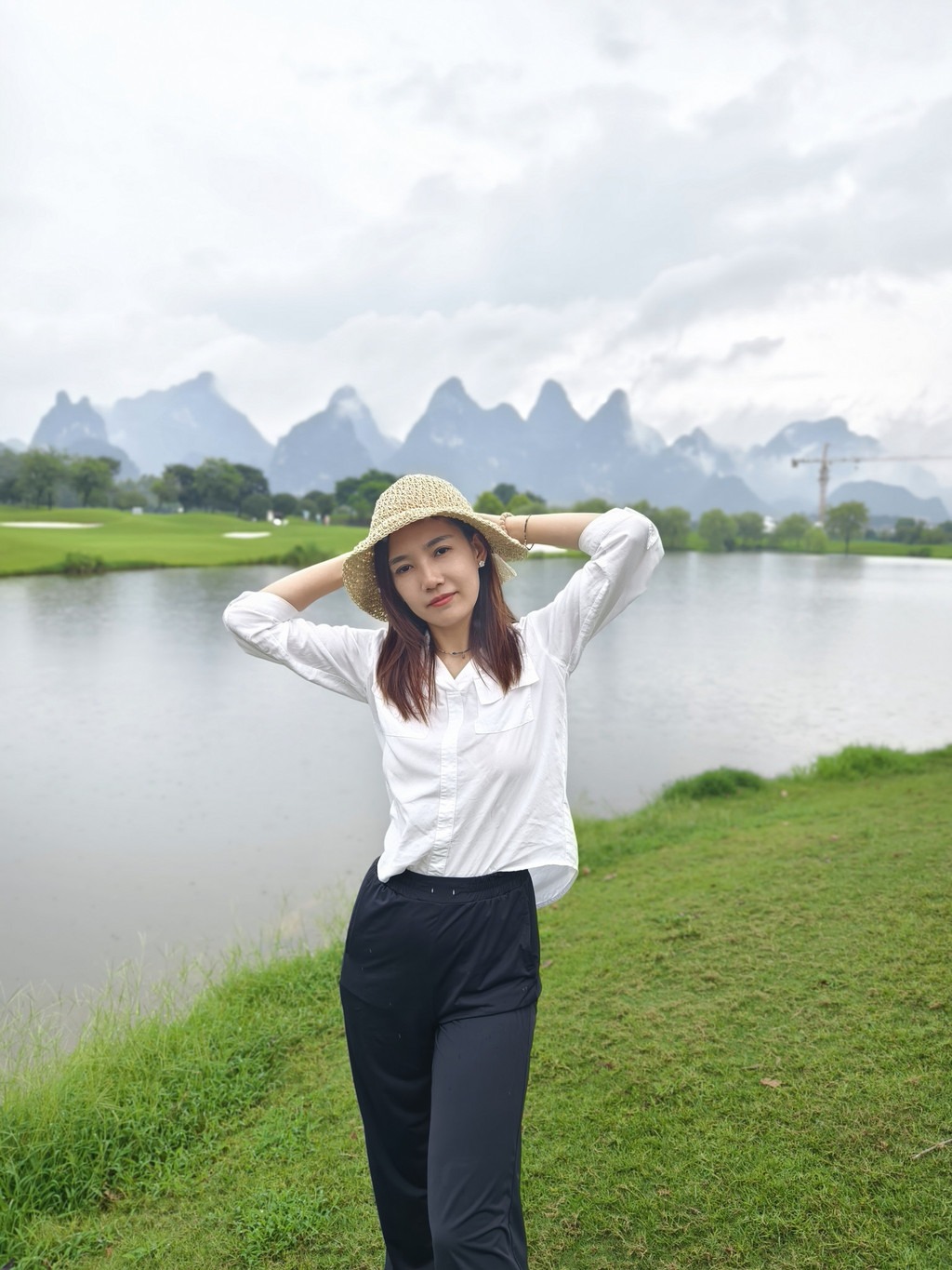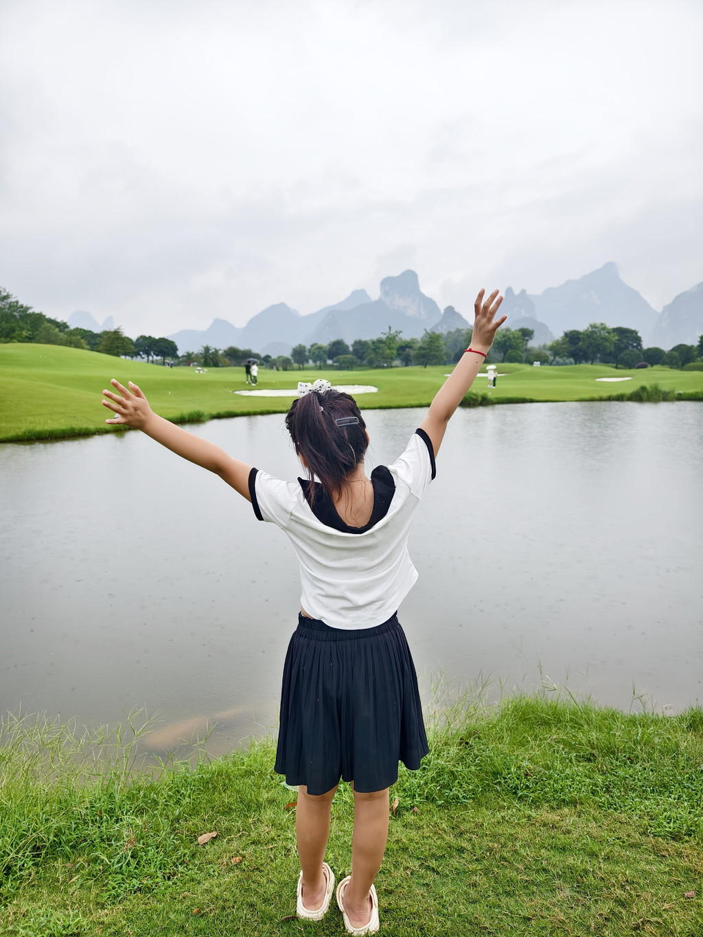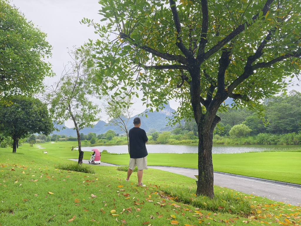 今天早起外面依然下着小雨,今天打算去市区附近的一个景点-桂海晴岚,也算一个人工打造的网红景点,我是被网上的照片吸引来的,景区里修剪整齐的草坪,搭配远处的山峰,中间还修建了一个人工湖,整体非常漂亮。只不过今天天气不好,小雨一直时断时续的下着,一直没有晴天。