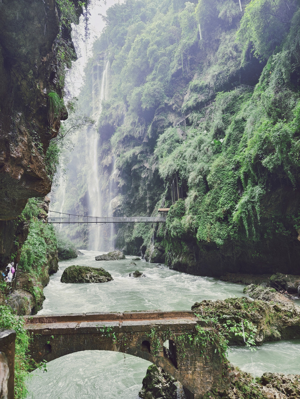 早上打景区电话咨询,景区已经开放了,没有犹豫直接去了马岭河大峡谷。本打算早点去,错过人流高峰,但是收拾完行李开车过去也差不多11点了。马岭河峡谷被称为地球美丽的伤疤,进入景区一直向下到峡谷底部,然后就看到一条条的瀑布从峡谷上方飞泻而下,因为昨天刚下过大雨,所以今天瀑布的水量非常大,从瀑布下穿过非常震撼。因为景区还未完全建设好,到达最后一处观景台后只能原路返回,栈道最窄的地方只能容纳一人通行,所以经常造成拥挤。除了这个缺陷,这里的景色还是很美很震撼的,所以没有后悔今天的决定。