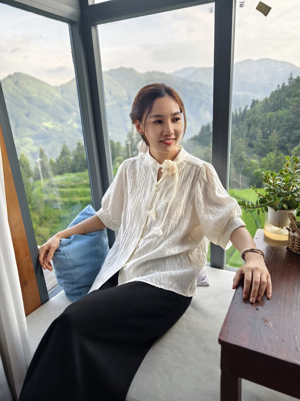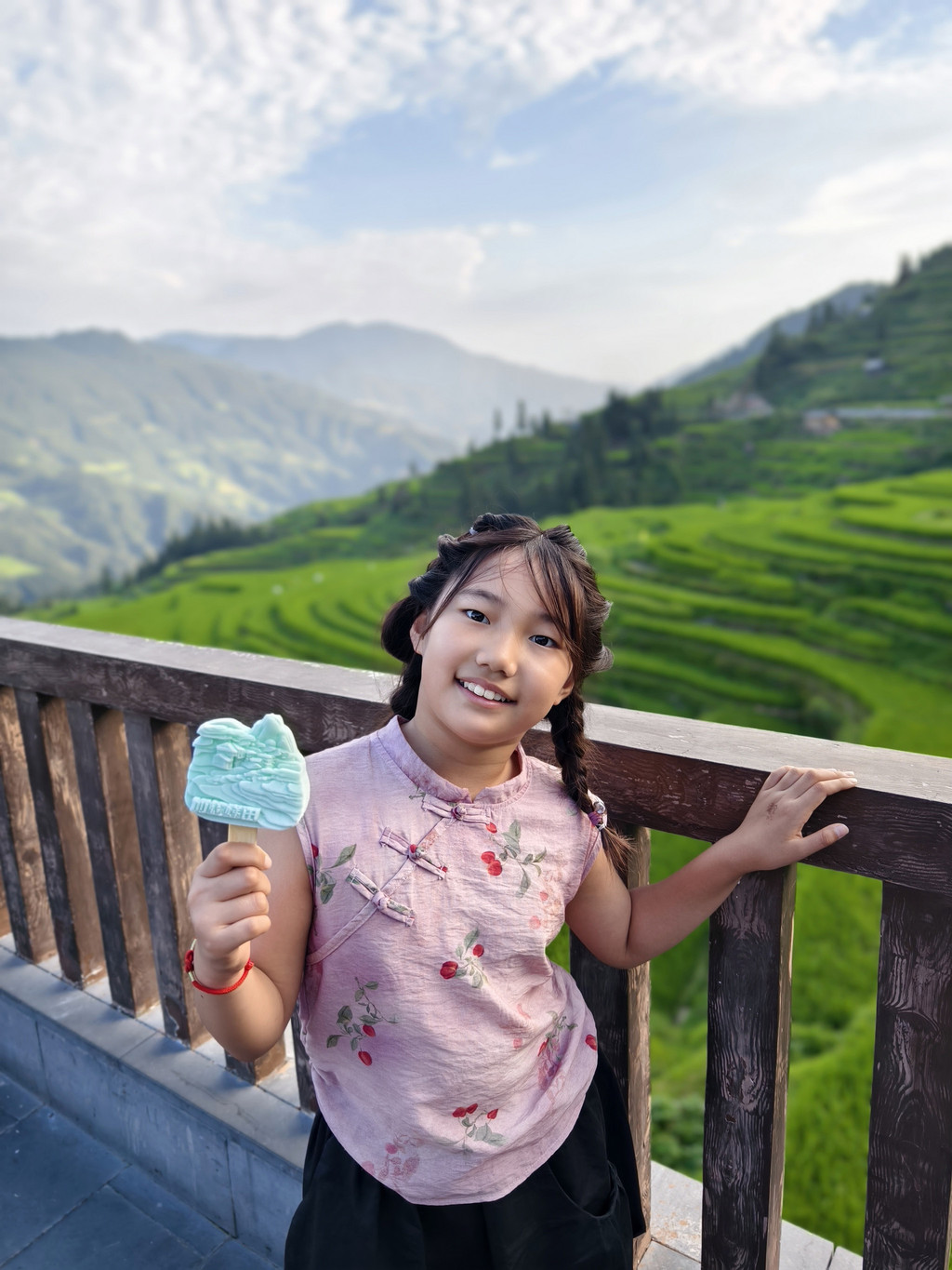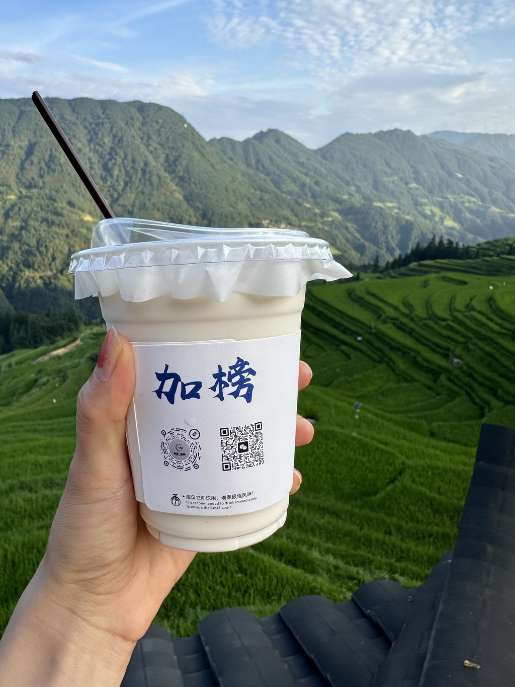 我们在民宿放下行李后就去了旁边的5号梯田。在这里的咖啡店喝了咖啡,还买了文创雪糕。顺着小路还能下到梯田里,闻着稻谷的香气,感受着不一样的自然气息。