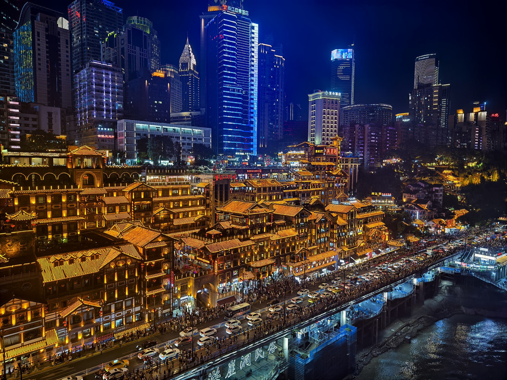 从解放碑又到了洪崖洞,因为人太多了,我们只是在桥上看了看夜景,没有下去,桥上也是非常拥挤,拍了几张照片就原路返回了。因为住的地方直线距离洪崖洞不算很远,老公非常自信的说知道怎么回去,但是走到一半还是放弃了,这个上城和下城实在是搞不明白,最后还是打车回去的。