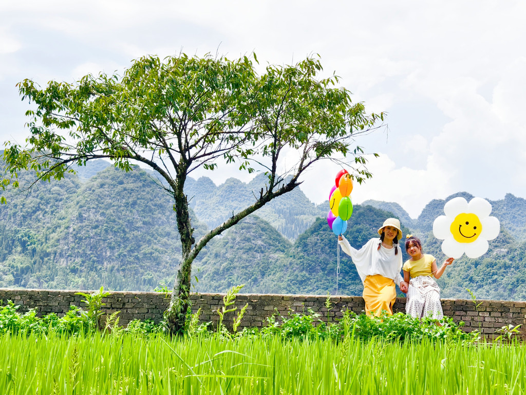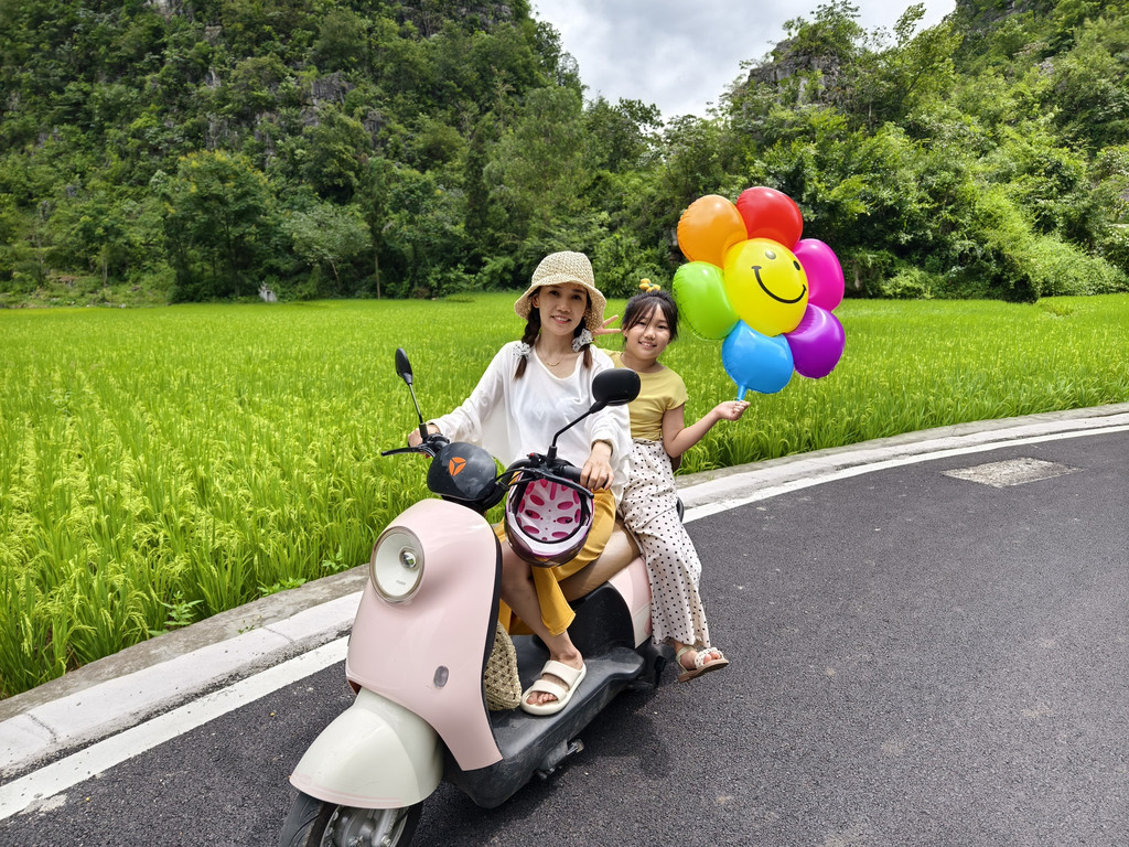昨天主要游览了山上的景点,今天打算去深度游览一下山下的稻田和村庄。今天吃过早饭退房后坐着观光车到了景区大门口。出景区后租了两辆电瓶车。跟着导航来到了几个热门的打卡点,不得不说,这个景色下拍照,不出片都难。去了网红咖啡店,看到了田间的网红树,坐了稻田小火车。因为时间安排的比较紧,下午还想去马岭河峡谷,舌尖上的中国介绍的蛋炒饭没有时间吃。还车后直接去了马岭河峡谷景区。