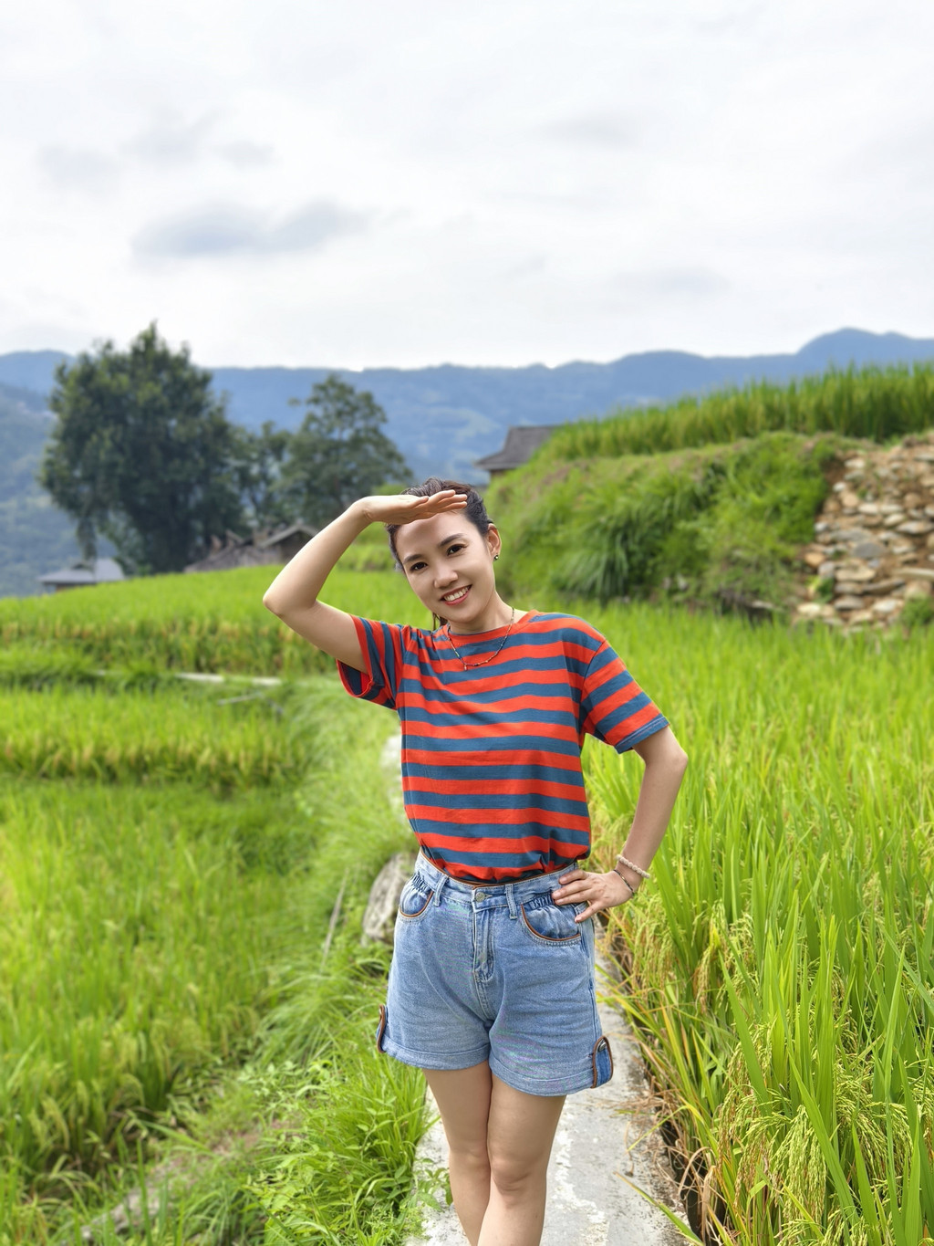早起在民宿吃了早饭,坐观光车来到了一号梯田,这里是最大的光景台,官方的宣传照就是在这里拍摄的。从这里看整个梯田非常壮观。沿着水渠可以走到梯田之中,这个季节的稻穗已经长得很饱满,到处飘着稻谷的香气,估计不到一个月就能收割了。水田里偶尔还能看到一条条的稻田鱼游来游去。偶尔能碰到附近的村民,他们会热情的跟游客打招呼,虽然有些话听不太懂,但能从他们的笑脸上感受到他们的热情。