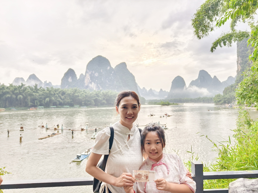 下山后我们住在了兴坪古镇河对面的村子里,雨也差不多停了,我们打算去二十元人民币背景取景地打个卡。需要从村子里做轮渡过去,怕天黑来不及,我们打个车来到了二十元人民币背景取景地,这里看到的就是想象中的桂林山水,如果天气晴朗,景色会更加美丽。排队拍了几张照片,来到了旁边的兴坪古镇,吃过特色的啤酒鱼,坐上轮渡返回了民宿。
