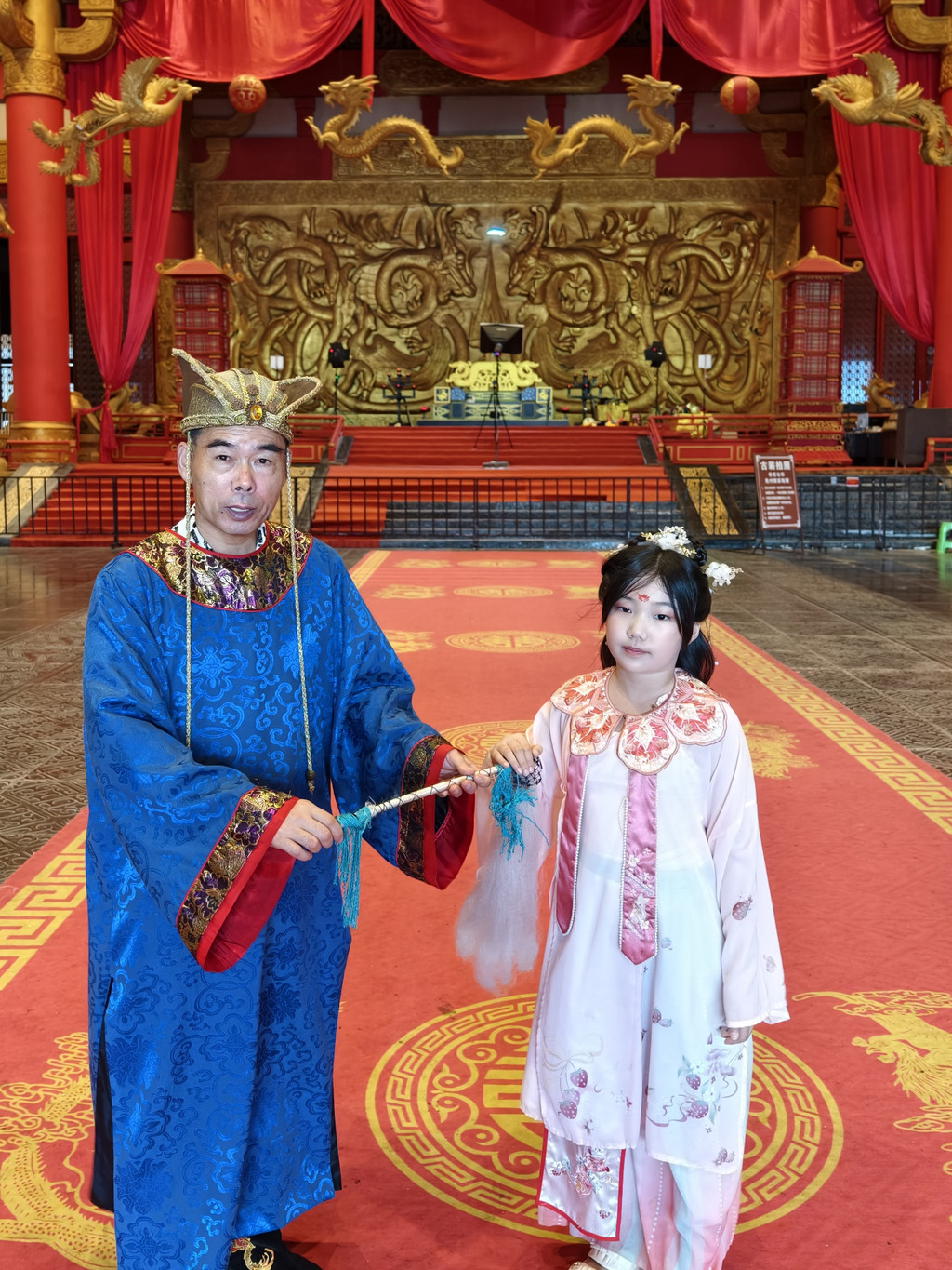 进入景区后就能看到很多的汉服馆,因为影视城都是秦汉风格的建筑,所以我选择了一身战国袍,因为没有秦汉风格的儿童服装,所以闺女选择选择一身唐装。刚开始还怕战国袍太热了,因为里外一共两层,面料也比较厚重,但是这边天气还挺凉爽,没有感觉到特别热。