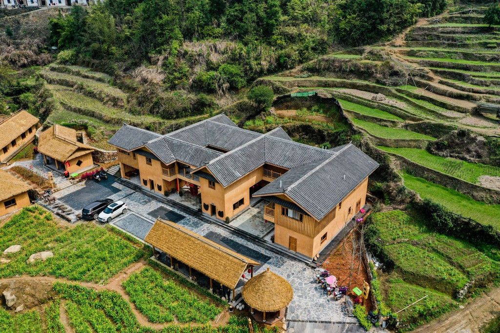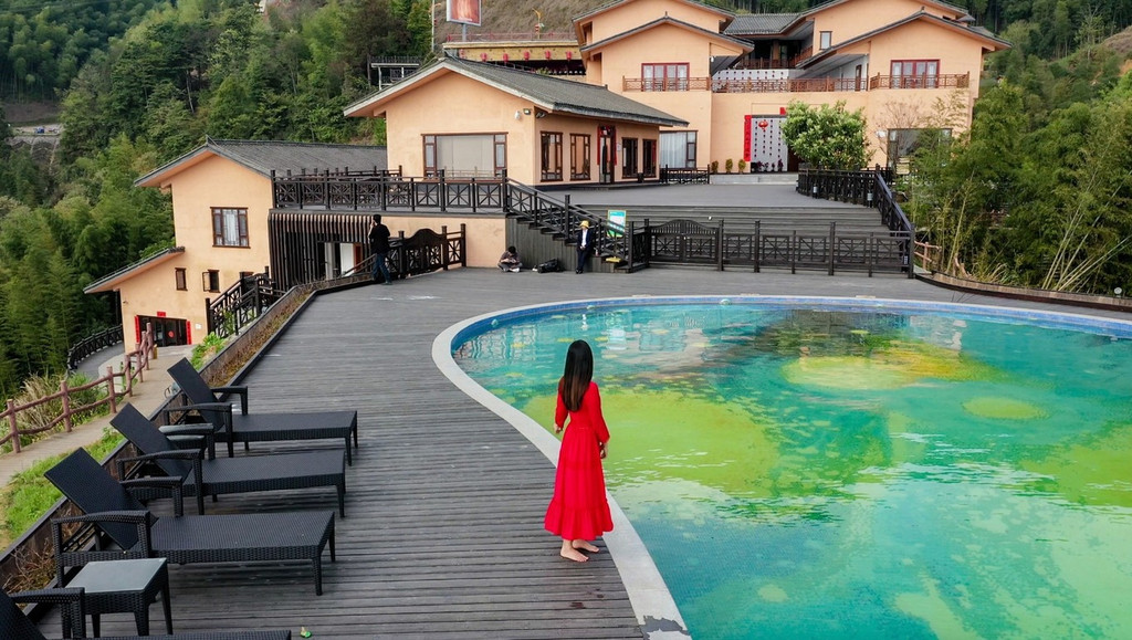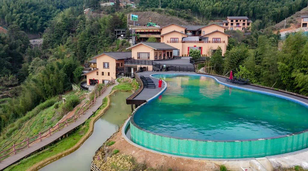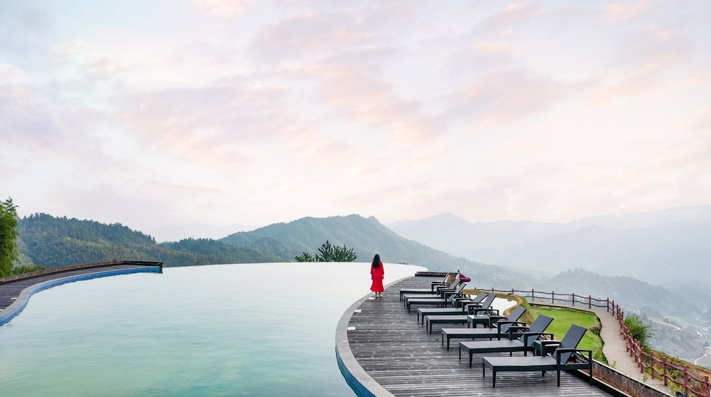 归梵民宿在这里建了一个巨大的游泳池,在上堡梯田这个地方,实在是让人惊喜。
