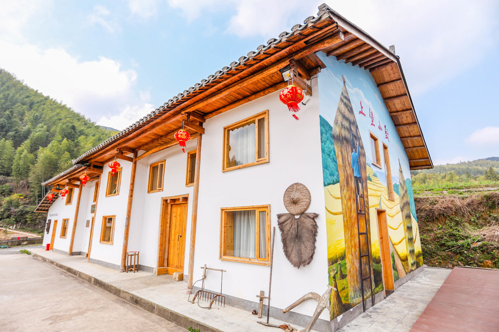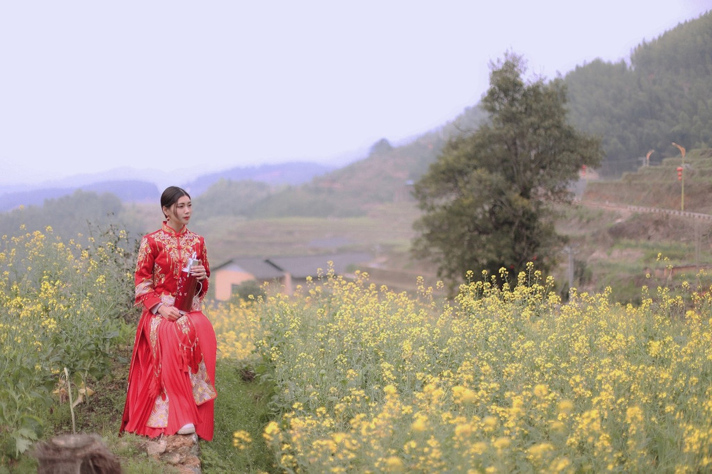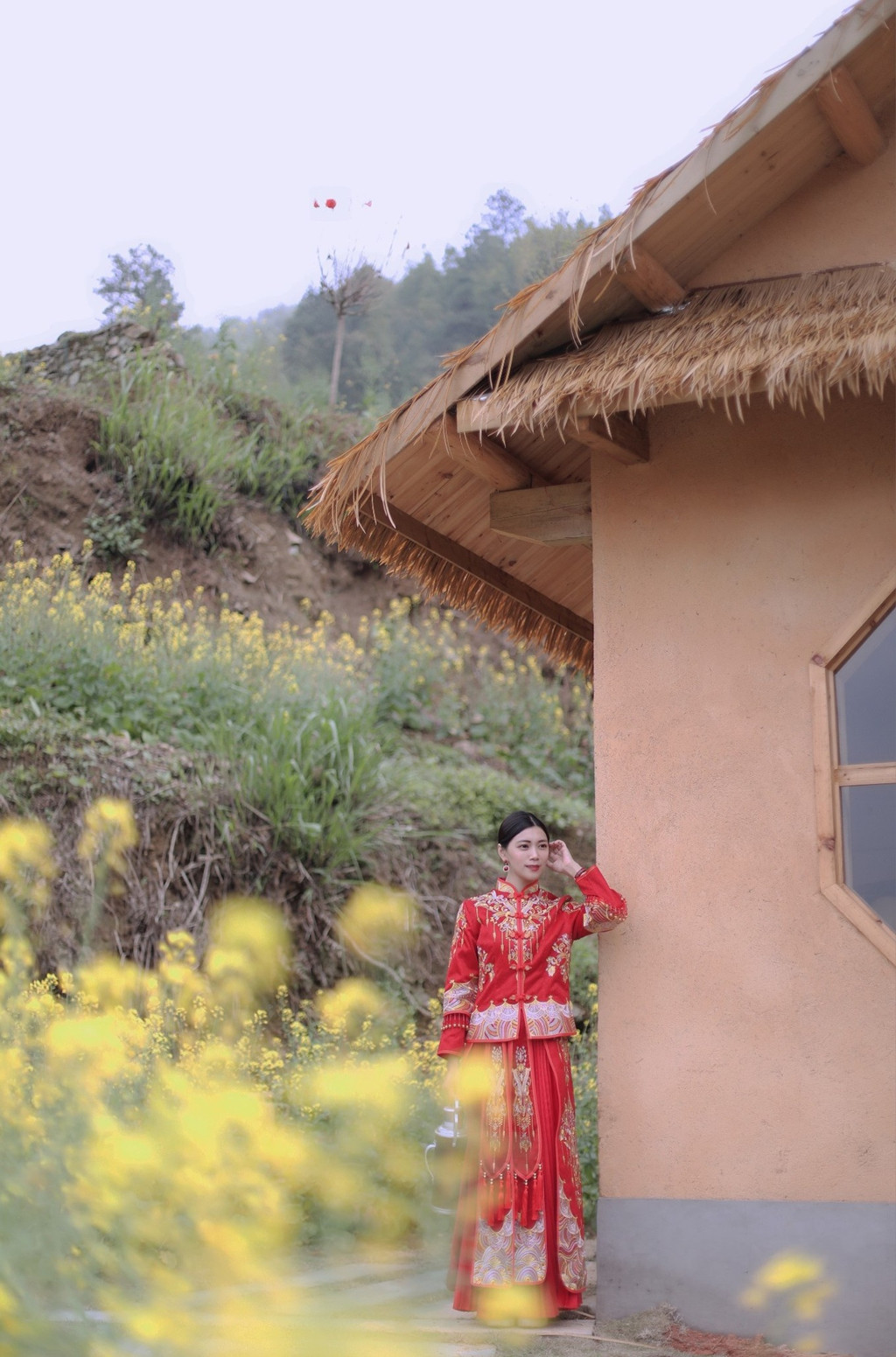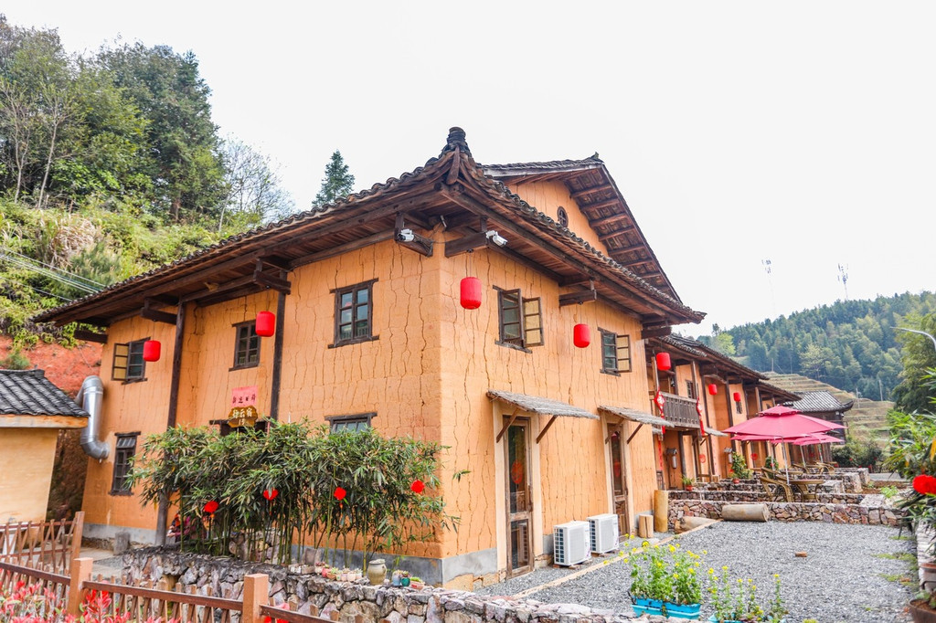 如果说最特别的,还是秋日。除了能看到稻田丰收的风景,还能看到客家人的婚嫁习俗。代表喜庆的大红色的龙凤嫁衣,那曾经在嫁娶中不可或缺的三转三响,都充满了民宿的传统和风味。