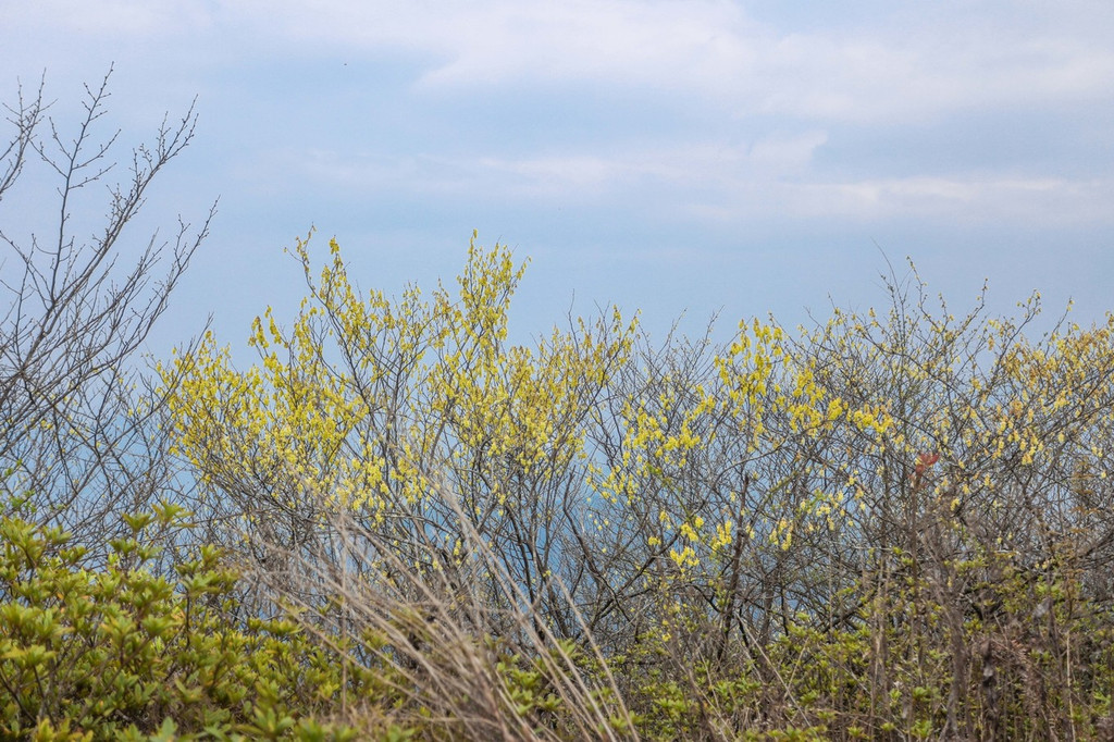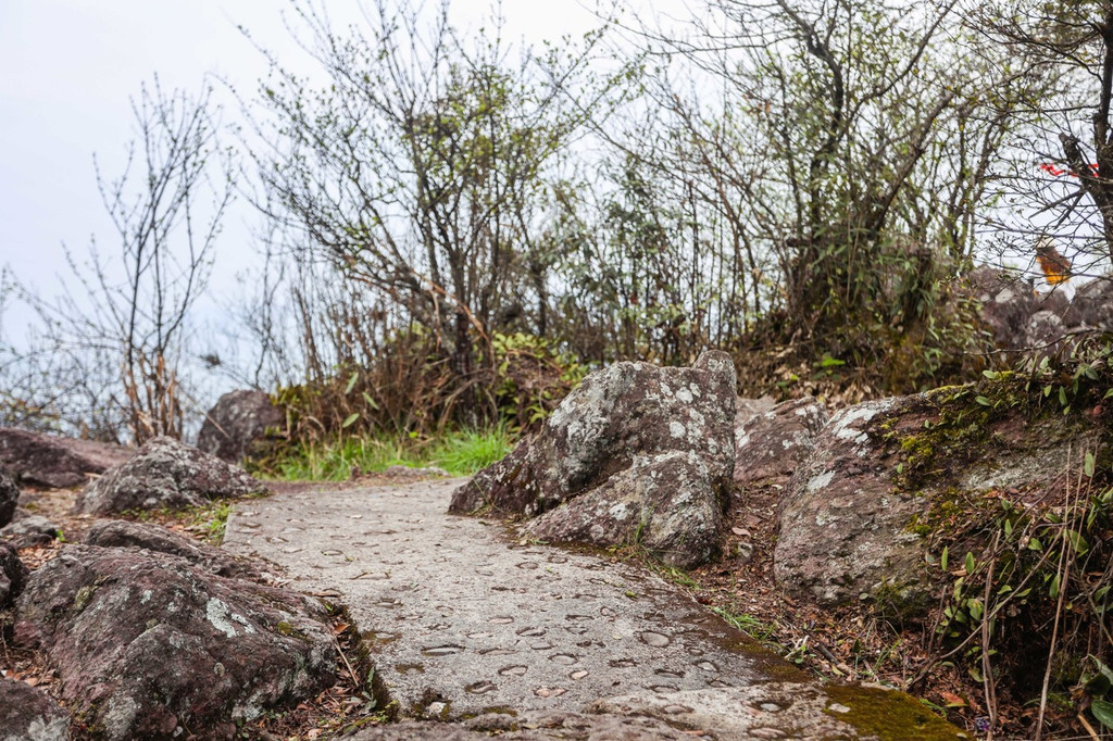 在山巅行走,这里怪石嶙峋,正是杜鹃花含苞待放的时候,如果在四月来到这里,还能看到漫山杜鹃花开的鲜艳景象。