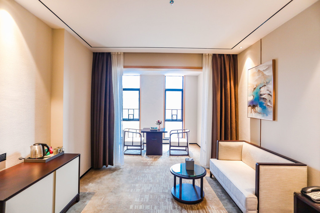 这里的房间面积不小,房间内包括舒适的沙发、可以处理简单工作的办公桌都一应俱全。在闲暇的时光,在房间内泡一壶茶,发发呆,或是来上一个舒适的午睡都是非常不错的选择。