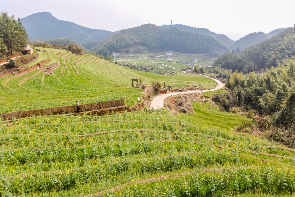 上堡梯田非常壮观,来到这里的时候正是 春日 ,梯田上很多地方刚刚种上了青绿的禾苗,山上青翠苍郁,有着春的味道和春的秀丽与动人。