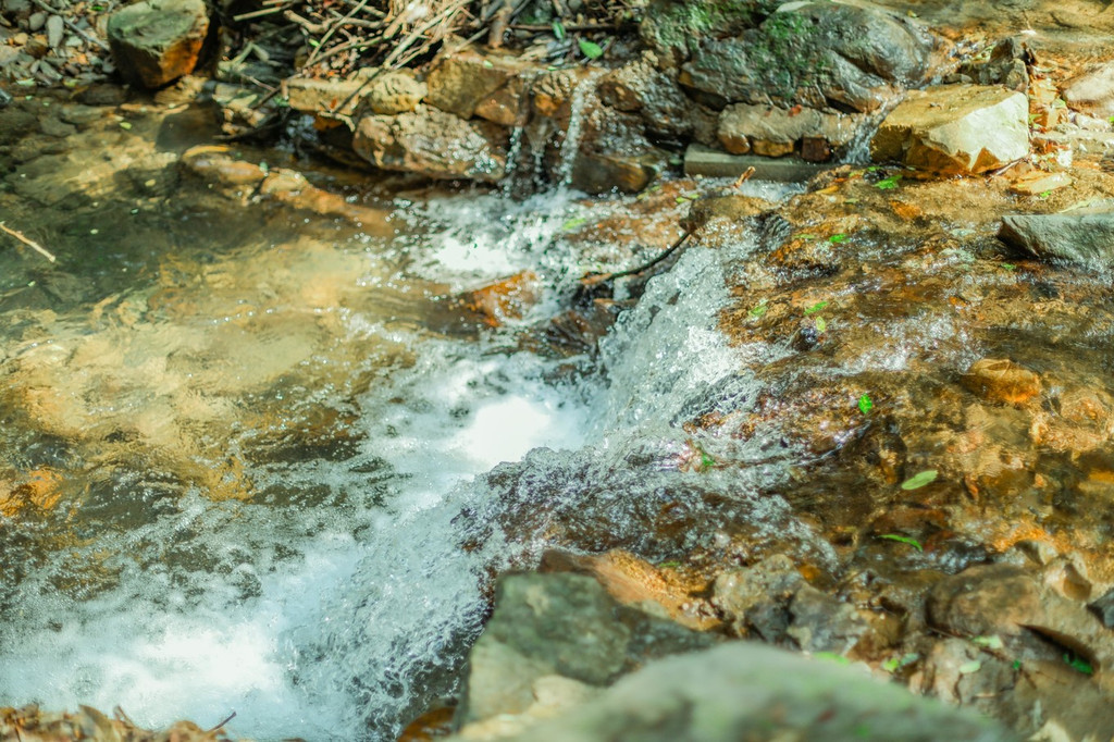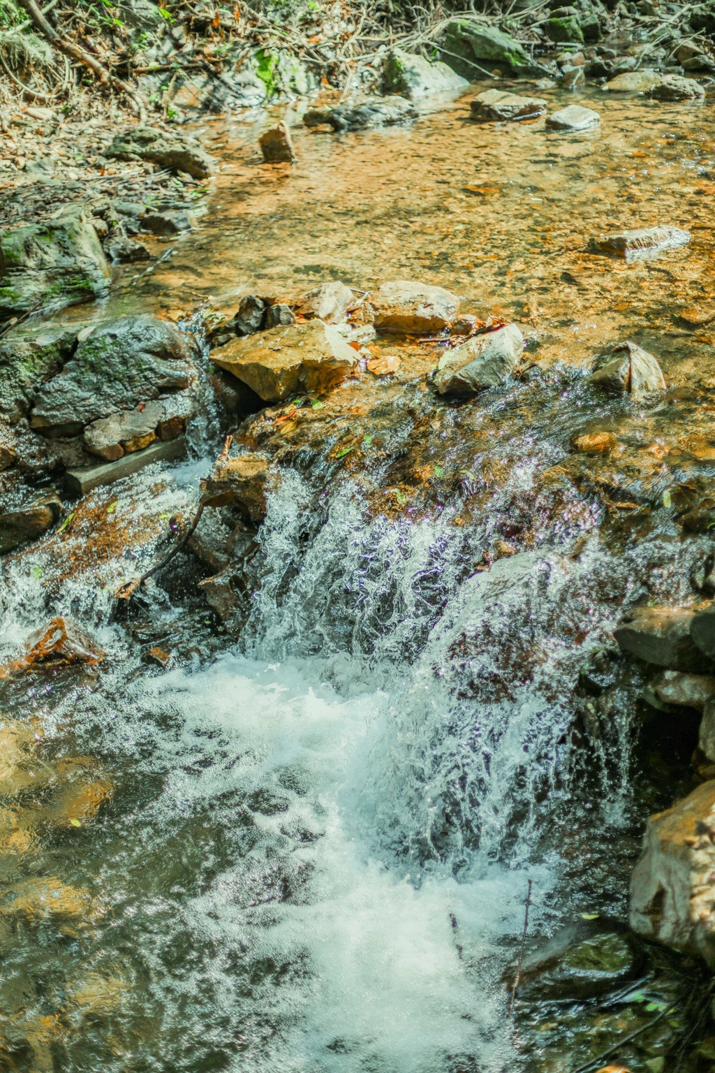 山涧偶然流过落差的地方,溅起水花,白色的水花带起阵阵清凉,清爽而动人。