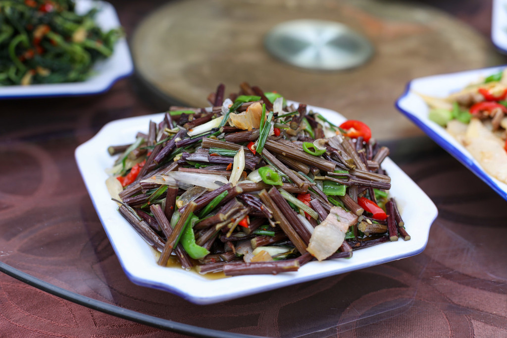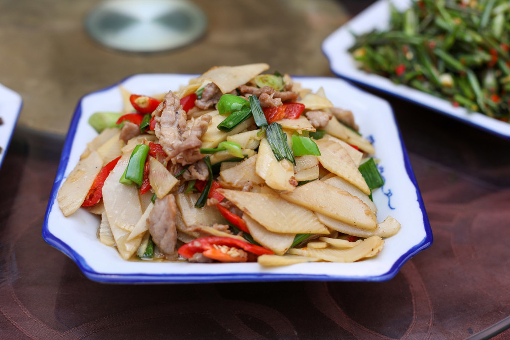 作家村中有一家小小的饭店,饭店的装修算不上豪华,也没有那些价格昂贵的佳肴,但这里的菜式大部分都用了阳明山上出产的天然食材,无论是那带着微微甘苦味道的野菜亦或是那鲜嫩甘甜的竹笋,在无公害的山野间生长的这些优质食材都有着一种独特的乡土味道和鲜甜味道,这些山野间的味道,别有一番自然的滋味。