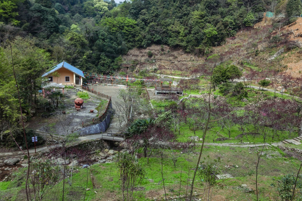来到作家村边上,看过去是满眼的桃花和各种我叫不出名字的鲜花树木,在以绿意为主的阳明山中,满眼的粉色很有一种世外 桃源 的奇异感觉。