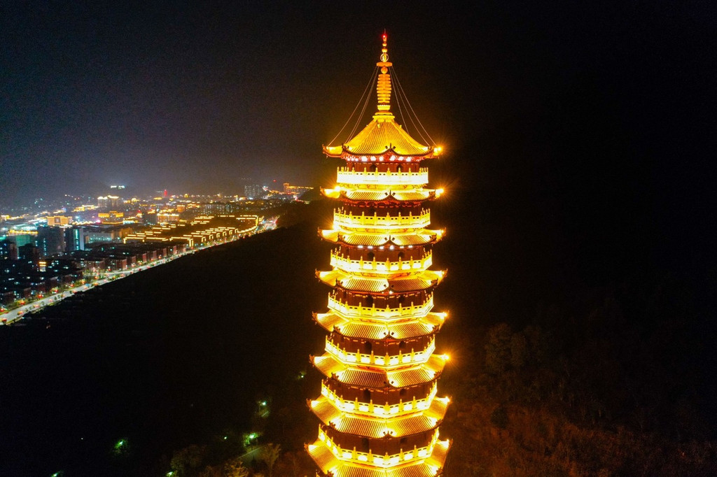 来到这里的时候, 文昌 塔大门已经关闭,不能登上塔顶。但是那塔身上的璀璨灯光也格外动人。