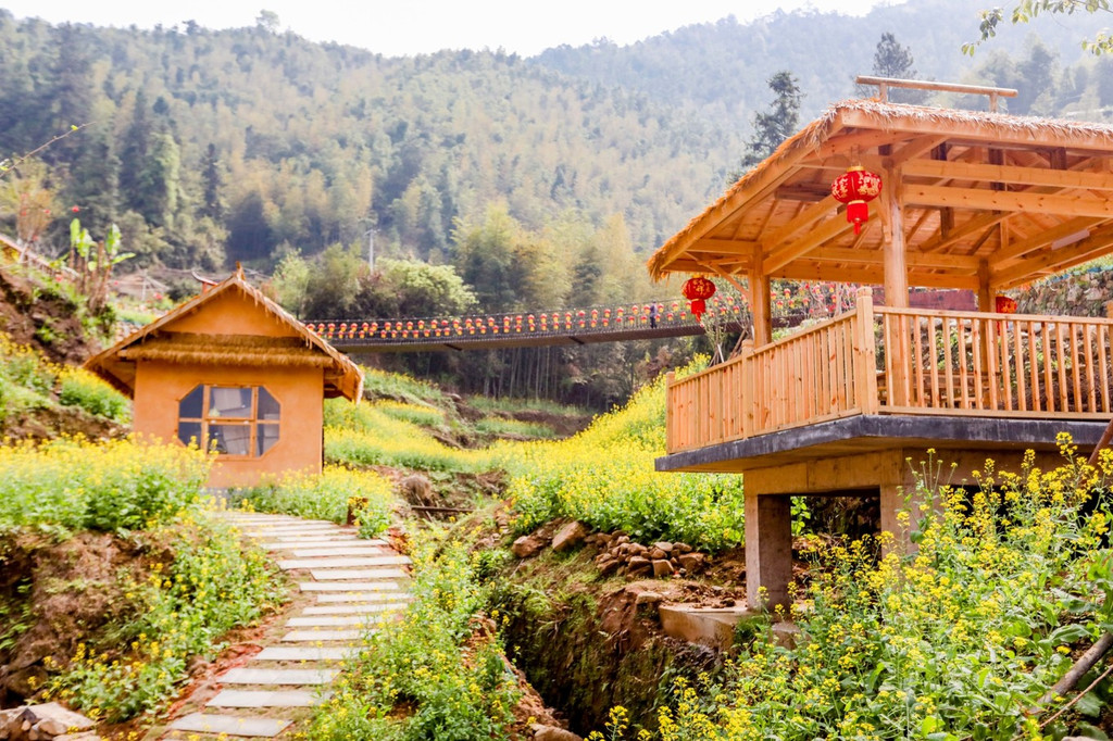 来到这里的时候,虽然油菜花的花期已经稍微过去,但在这里,仍未凋谢的油菜花点缀在各个建筑当中,充满了春天的味道。