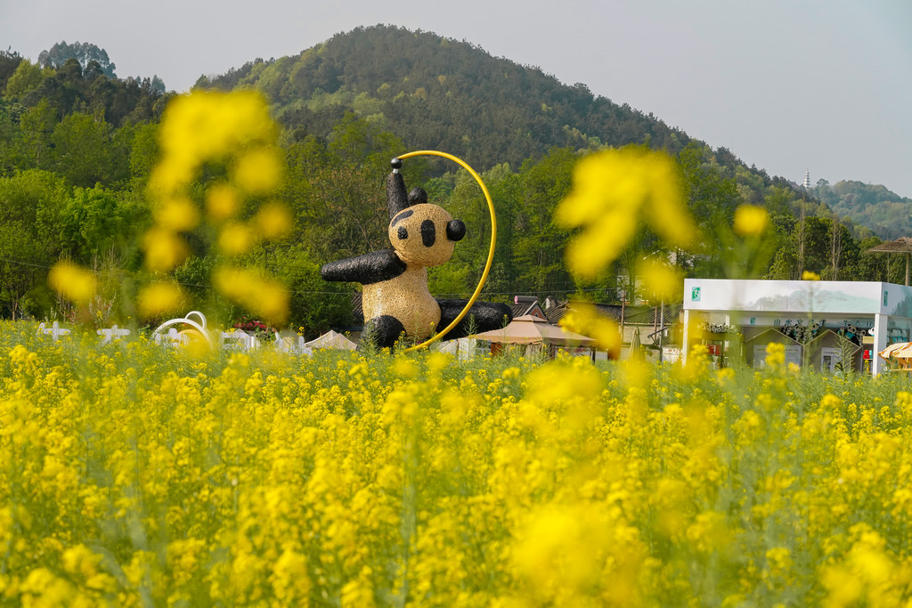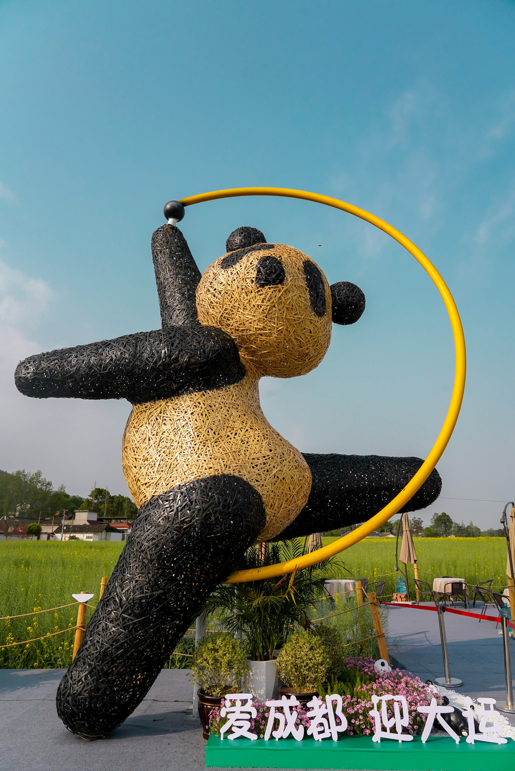 拍照打卡也不在只是一片单调的油菜花,竹编的大熊猫更是超萌超可爱,好想抱一只回家