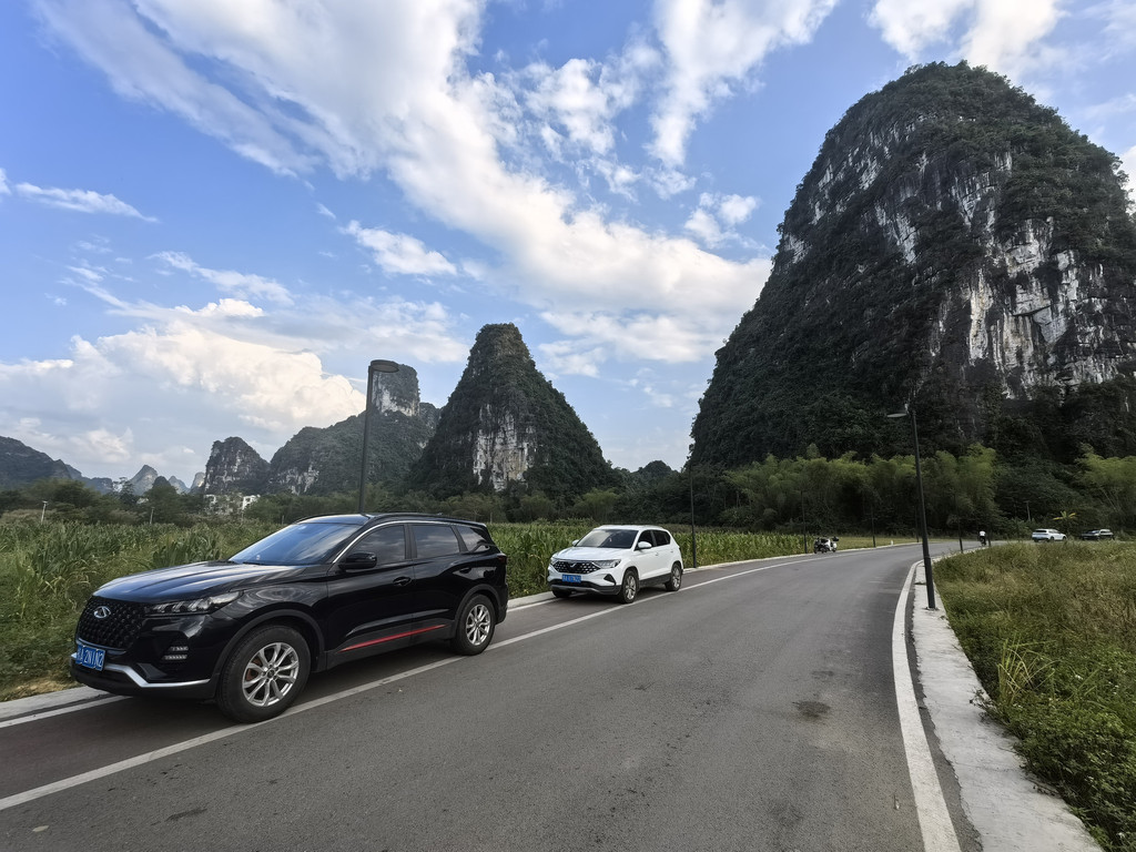 明仕田园最好的游玩方式其实和阳朔的十里画廊一样是电瓶车。于是我们又卡在不会骑电瓶车上了,但这次至少我们有车,相对方便点。