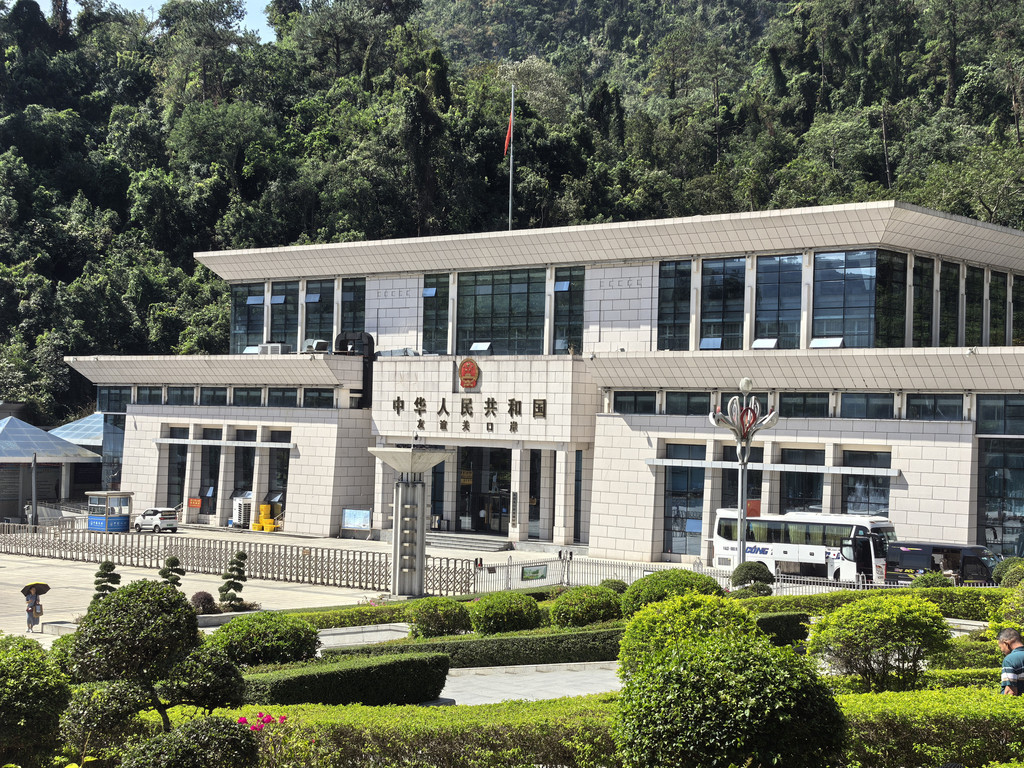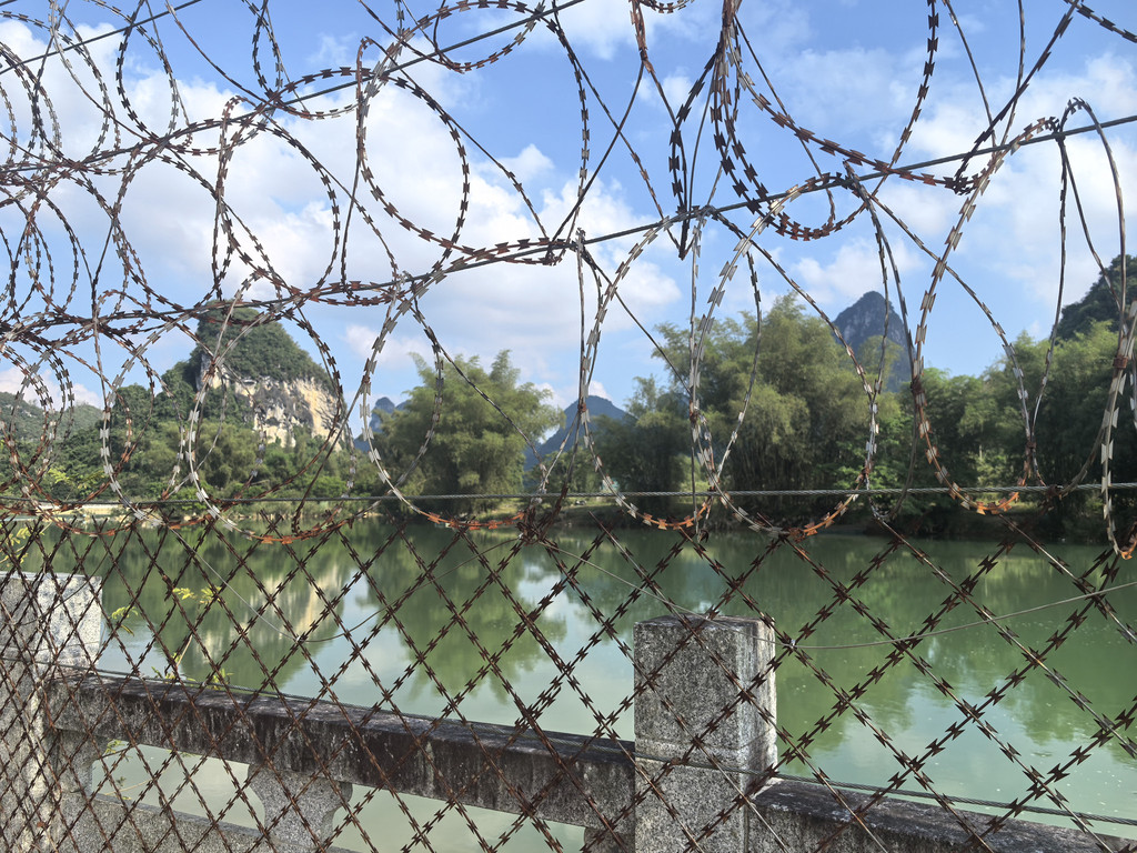 出来后的路中就能看见真正的国境线,国道322的终点,跨过这条线就是越南地界啦~