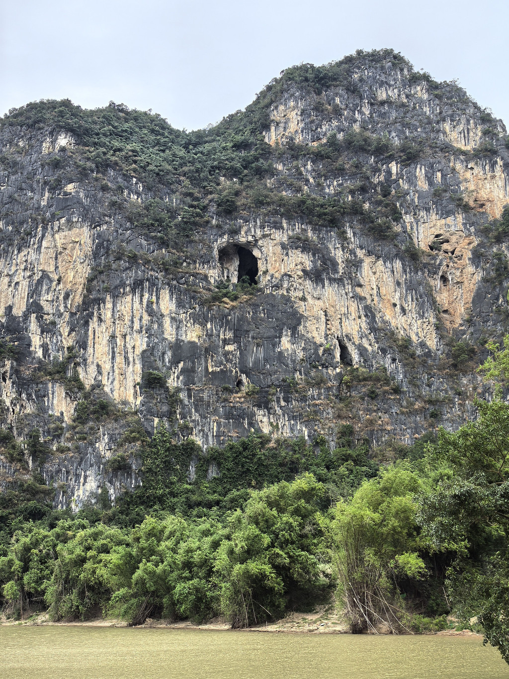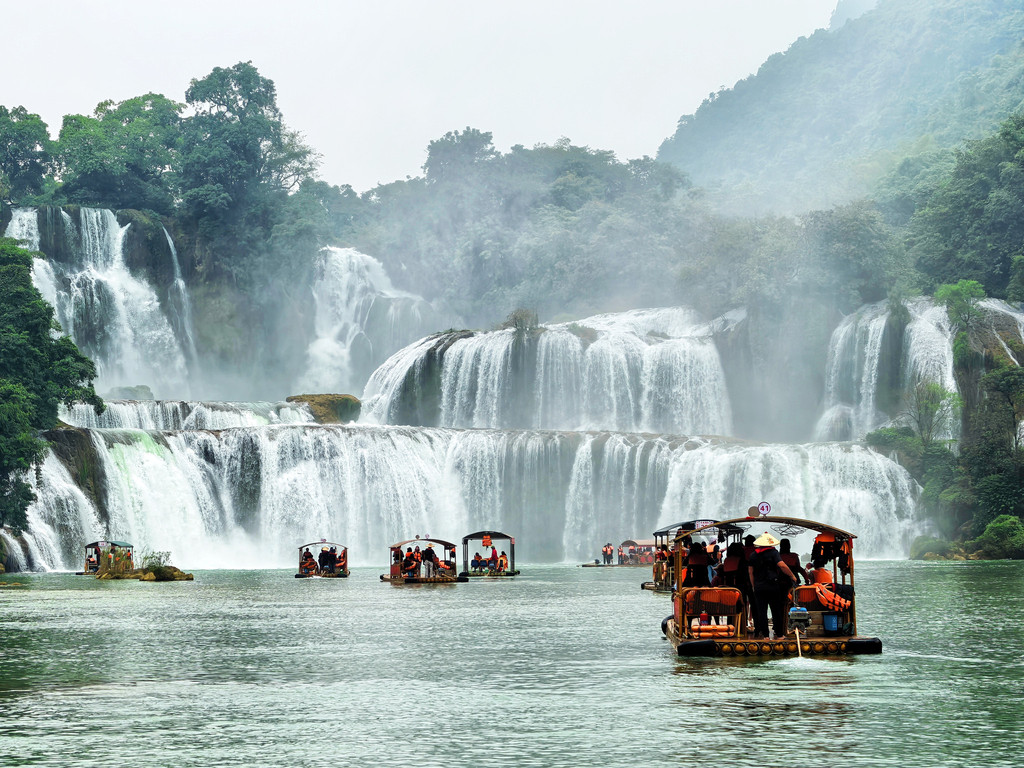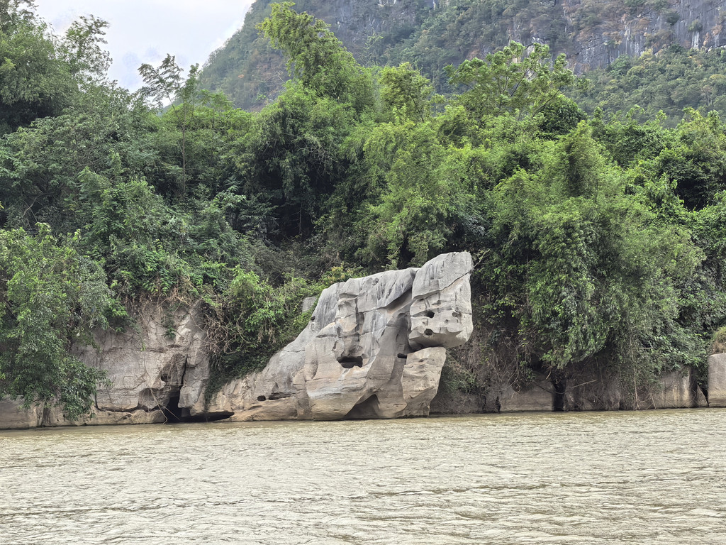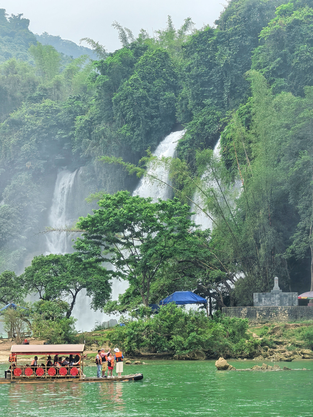 河另一边是越南的板约瀑布,还能看见他们的界碑。瀑布落差很大,但宽幅和造型我们的好看很多。还会有越南的商贩划船到我们的船边卖咖啡、香烟等商品,一般建议不要购买。