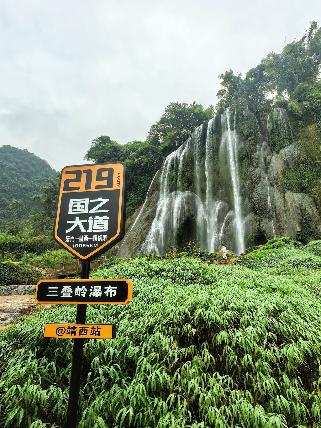 离开德天瀑布前往通灵大峡谷,途中会经过三叠岭瀑布,一道在国道边的野生瀑布。根据一路的引导牌会有专设的免费停车场(其实正好是古龙山大峡谷后门出口处)。