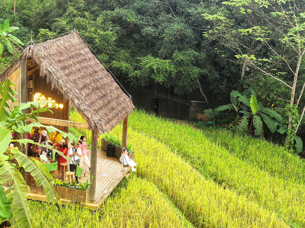 稻田咖啡确实是很适合拍照打卡的地点,网红名副其实。走到这时突然下起了大雨,我们足足等了至少40分钟,就希望雨能停,可一直没停,但真当我们豁出去准备走了,结果没多久雨开始停了。