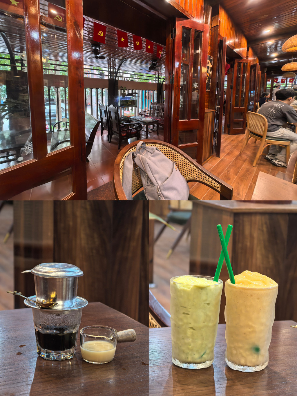 越南咖啡好像挺有名,不过我本身体质不能喝,点的牛油果和芒果沙冰味道不错。给老爸点了份咖啡,其实他也吃不惯太苦太浓的。我们也不懂咖啡,但就好奇这里并没有像咖啡店那种一接近就充满咖啡香的味道呢?咖啡店这趴停留的时间最长,旅行社抽成应该在这里~哈哈哈~