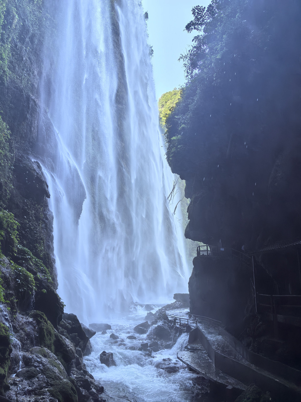 通灵大瀑布的单级落差达188米,在国内应该也数一数二。我们这次无法近距离接触可惜了。