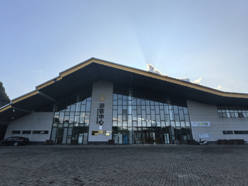 自驾车导航“明仕旅游度假区游客中心”,停车场很大,凭竹排游门票可以在游客中心登记免费停车4小时。