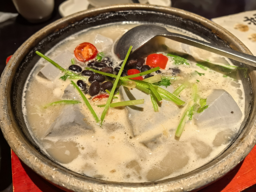 点了好几个特色菜,百香果排骨打开了我百香果用途的新思路,酸酸甜甜的很好吃,只是排骨烧的太干太柴了,决定回家后我们自己改良肯定好吃。鸡皮果豆腐很嫩很好吃。