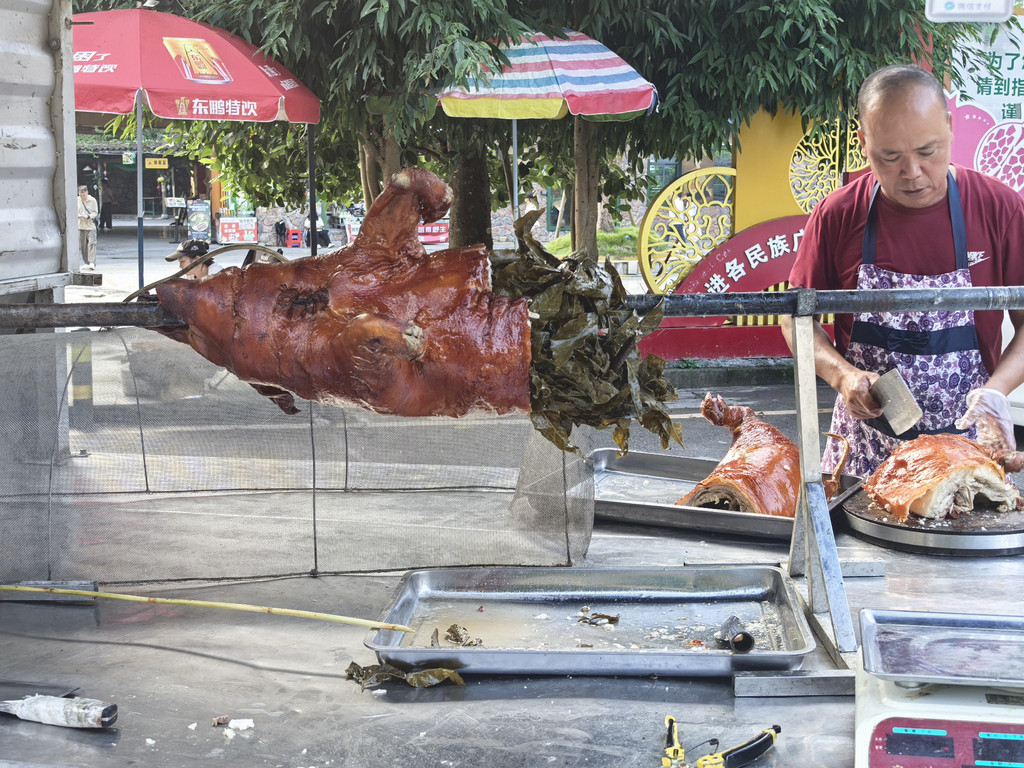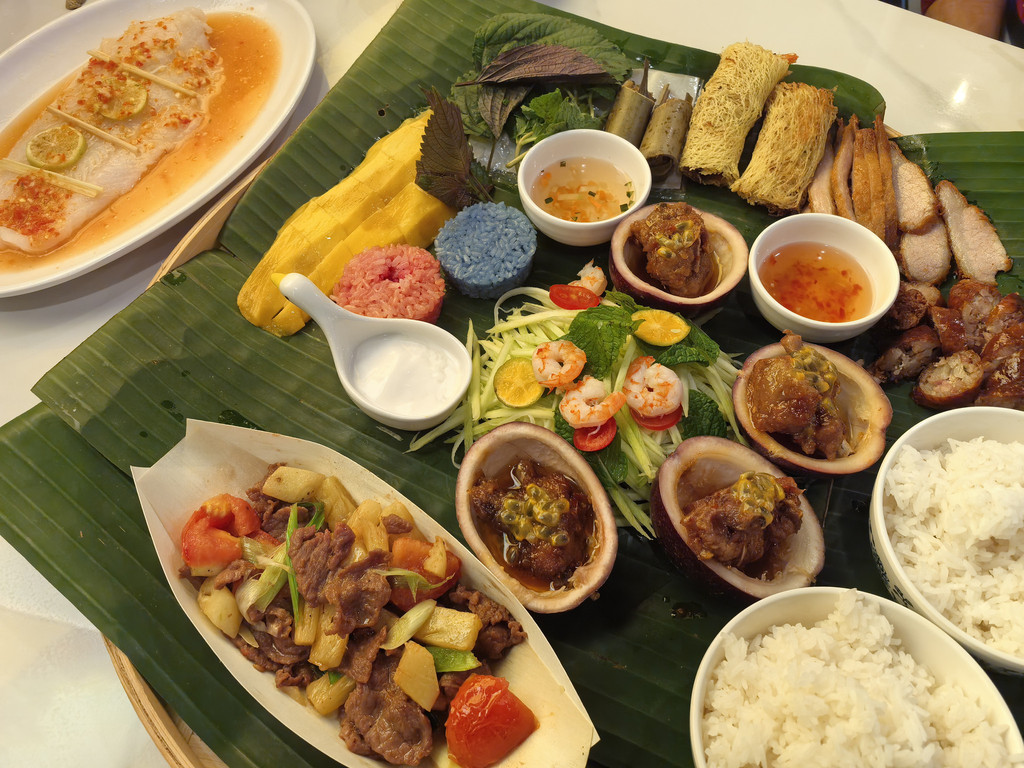 景区出来晚餐越姆娘好吃餐厅的越式簸箕饭,颜值高味道也不错。街边还看见烤猪肉,等吃完饭出来摊位不见了~