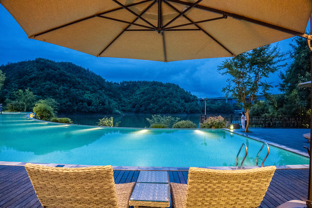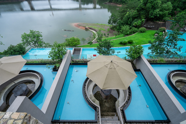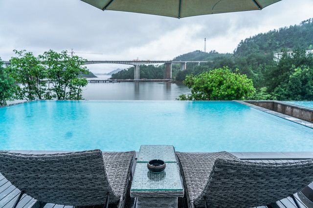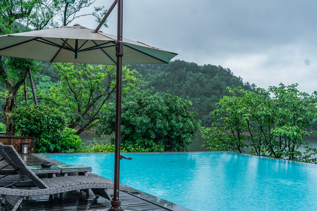 虽然下雨不能畅游在无边泳池,但是躺在泳池边一边欣赏山水风光一边感悟时光慢慢,光是想象都觉得美妙。