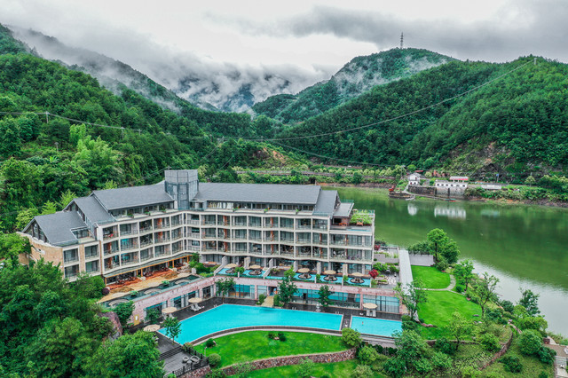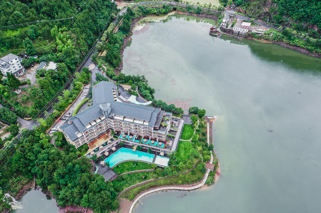 从高处俯瞰千岛湖景澜返里度假,酒店本身被掩映在绿色山水画卷里,酒店出来就是环湖公路,非常适合自驾前往。而对于非自驾游客来说,也可以选择乘坐高铁到达千岛湖站后打车前往,也是非常的方便。