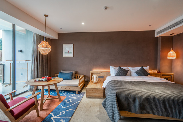 当然,不仅仅是客房拥有的风景视野,客房本身的设计也让人极为喜欢,非常的素色、简约、安静,所用材料以实木、黄铜、玻璃、陶瓷为主,配置的床品和卫浴洁具按五星级酒店标准打造,造型简单质朴,却不粗浅,每一个细节都在精雕细琢中下功夫,给每一个到访者以满意的度假享受。