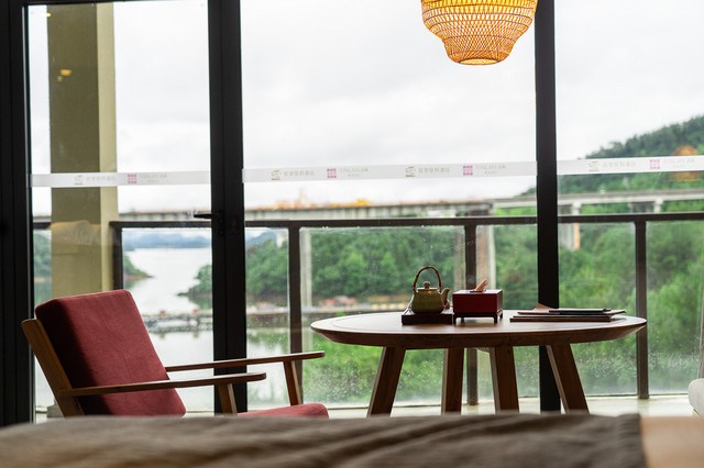 最最让人惊叹的还要属酒店的客房,入住的传承-秀水泡池大床房感觉就像是把千岛湖的山水画卷装饰到了客房里,躺在客房的床上、站在客房的大阳台、坐在靠窗的木椅,以及浸泡在秀水泡池,都可以将绝美山水风光一览无遗。