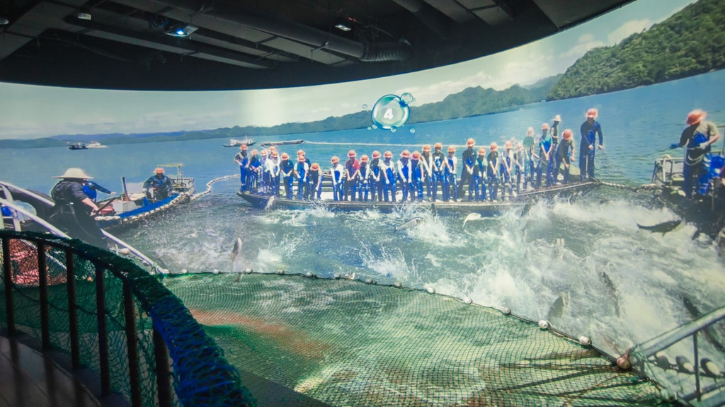 ✅一进门的巨型瀑布5D效果太震撼了,仿佛一秒进入水下世界!这个区域的互动vr和千岛湖巨网捕鱼🐟都很真实,拉网过程中,拉网越快,鱼跃出水面越多。孩子们很喜欢!