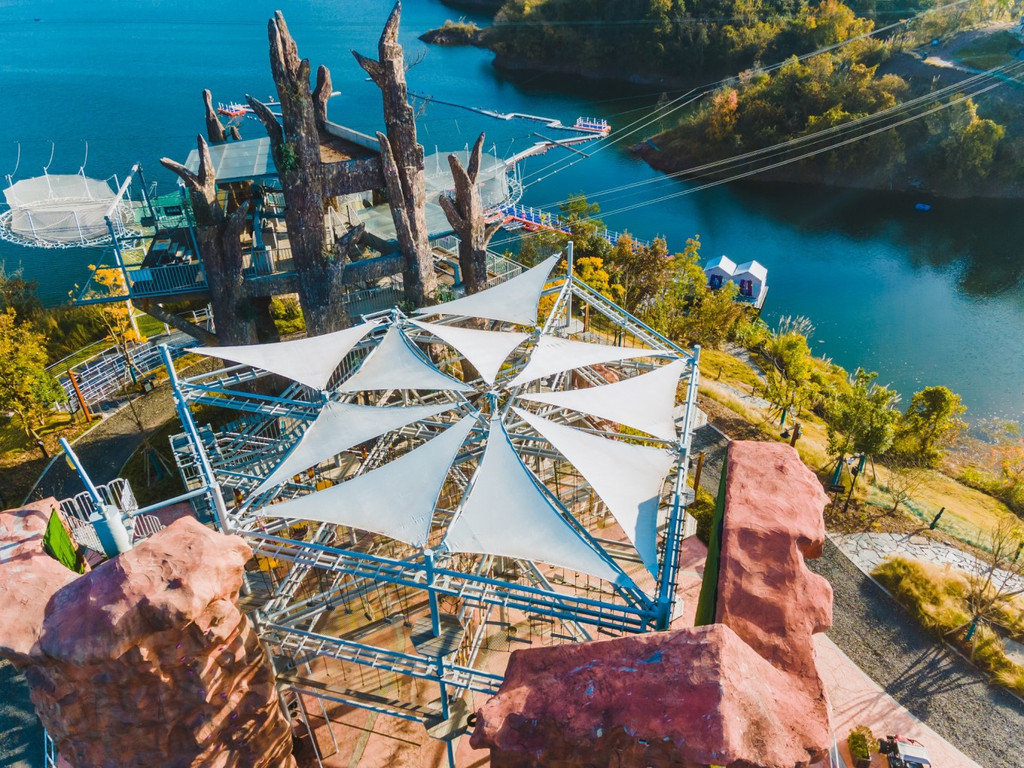 ✅🈶️高空秋千、空中索道、悬浮蹦床、岩壁攀岩🧗♀️、水上自行车🚲、探洞项目都很刺激,适合爱冒险爱运动的大小朋友👨👩👧👦哦!