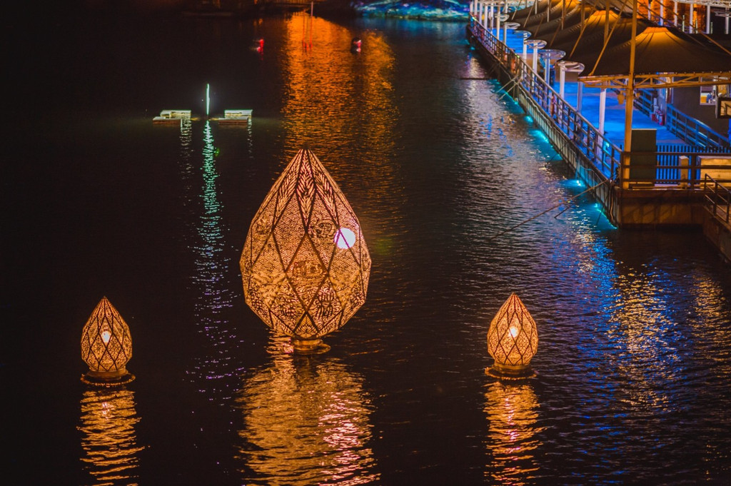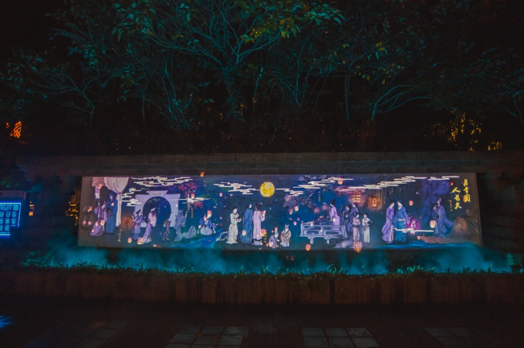 光影双年展很有设计感,赏圆月漫游岛上,鱼乐桥、月光长廊、月下老人、状元桥、醉月楼灯光秀