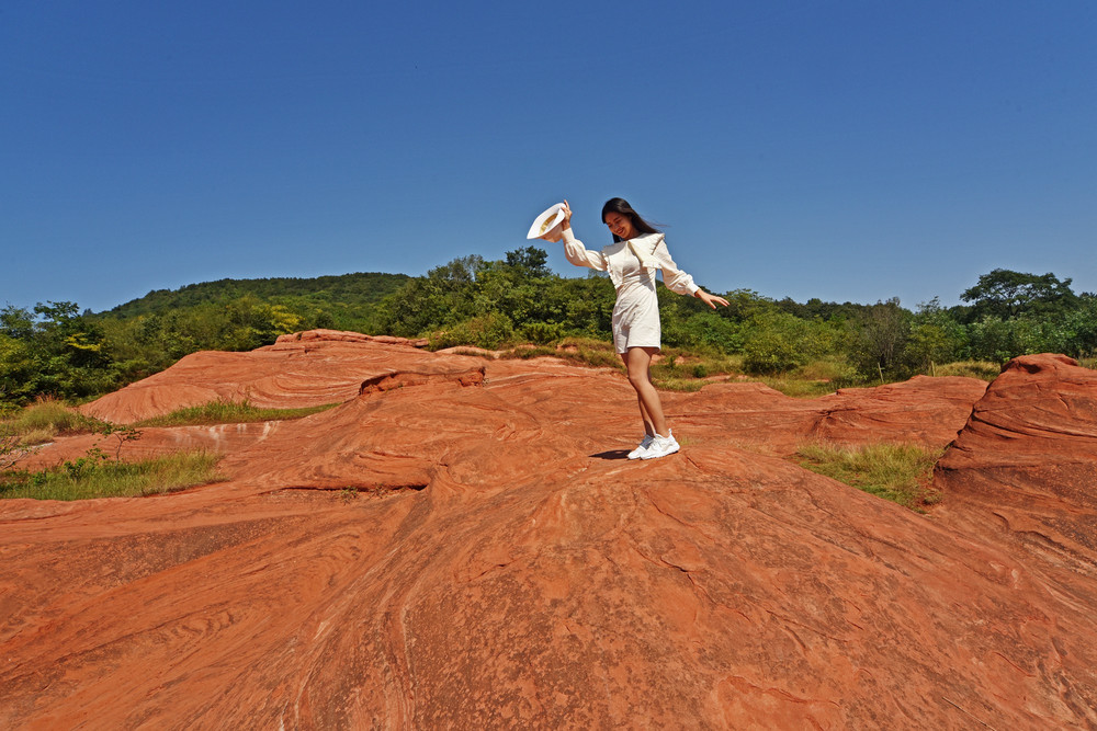 红石峡丹霞地貌占地约2平方公里,赭红的色彩和波浪般优美的纹理线条,让这成为上佳的拍照取景地,不需要特别的滤镜,也能拍出美美的照片。如今红石峡的美照已经在网上传播开来,成为定远县一处网红景点,尤其吸引自驾的游人前来打卡。
