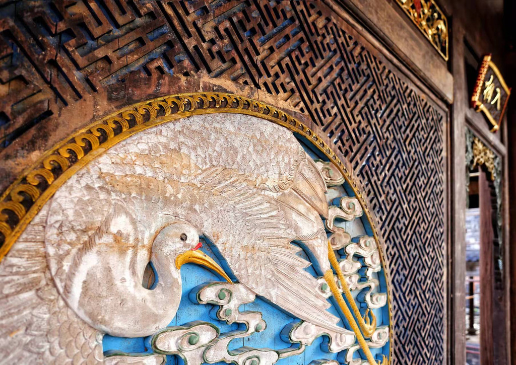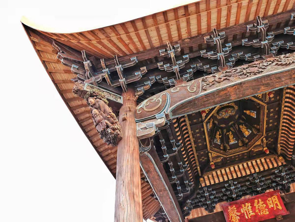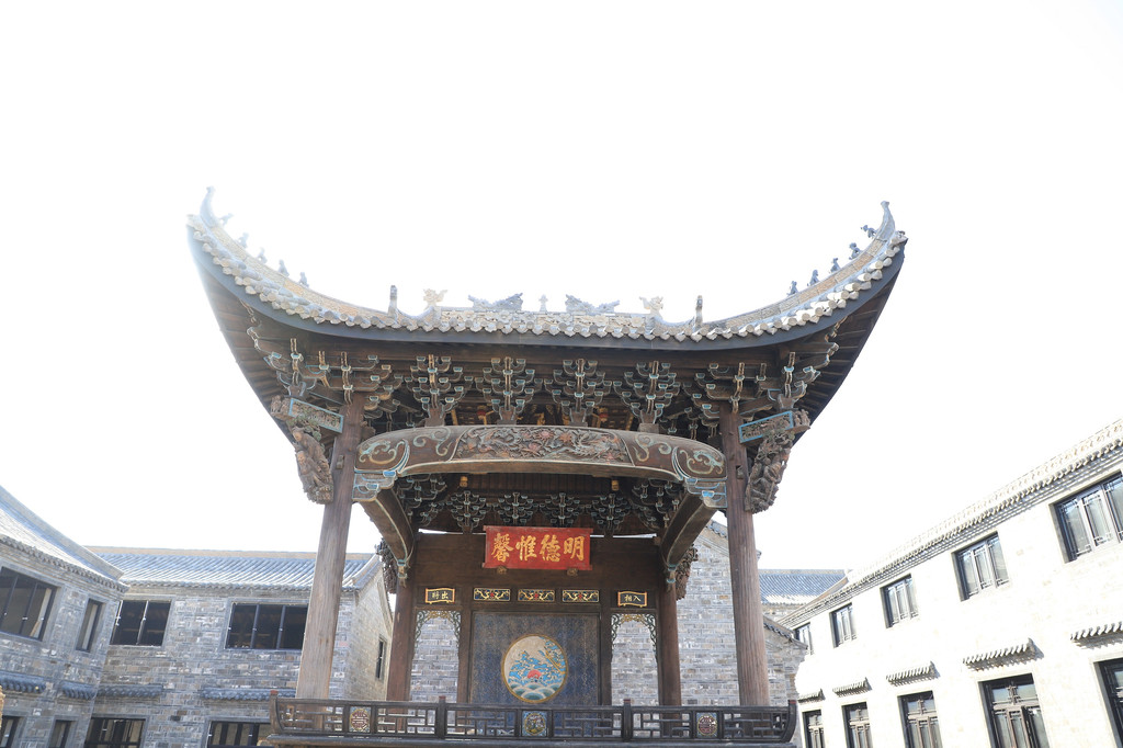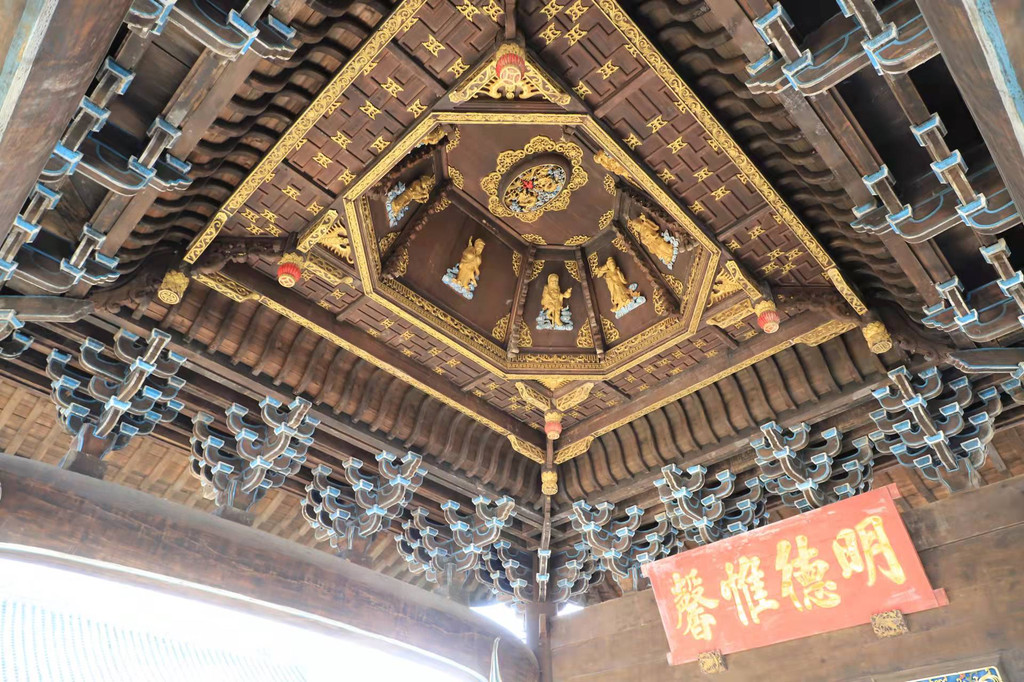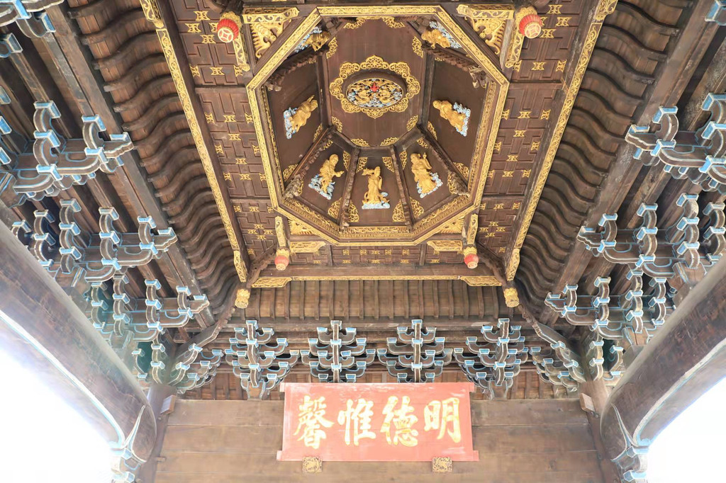 在太平古城的一隅,有着这么一座戏台,叫做苛山古戏台。四角上各有一牛腿,分别雕刻着八仙图案,寓意八仙迎客。八仙过海是中国民间流传最广的神话传说之一,可谓是妇孺皆知。这八仙分别为汉钟离、张果老、韩湘子、铁拐李、吕洞宾、何仙姑、蓝采和及曹国舅。相传八仙过海时不用舟船,各有一套法术。民间因有“八仙过海,各显神通”的谚语,在戏台之上雕刻八仙寓意吉祥。
