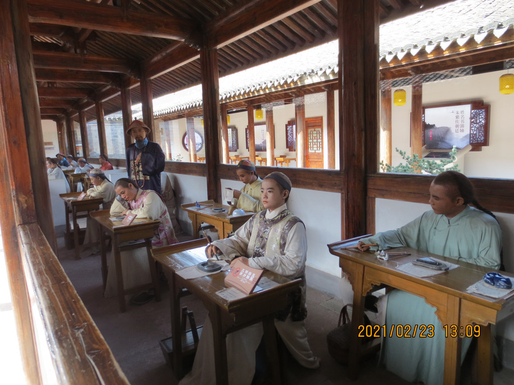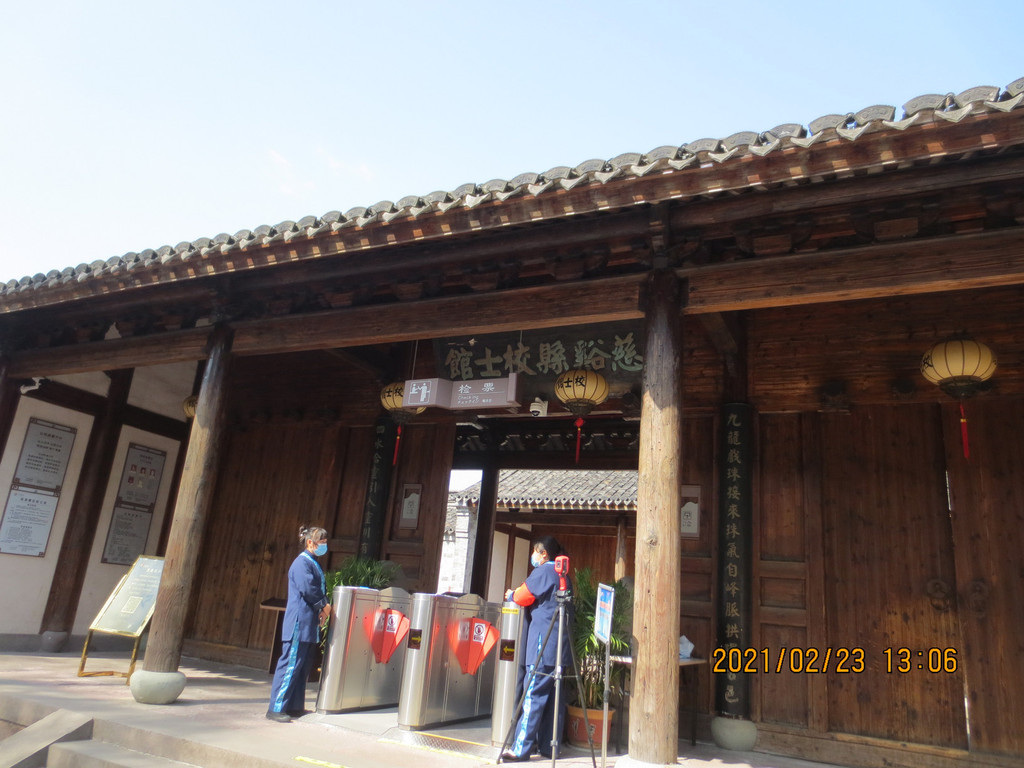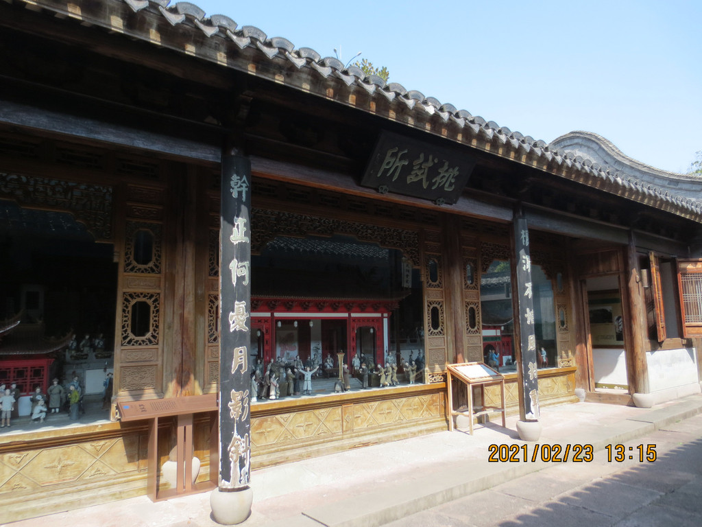 往从慈湖出来过牌坊后,往左手方向的路走到太湖路是慈城校士馆,清道光十五年(1835年)当地乡贤郑廷荣父子慷慨捐资两万四千银洋建造,创建至今,曾毁坏多次,也重新修建过多次。现慈城校士馆,占地面积八千多平方米,建筑面积约两千平方米,按清《光绪慈溪县志》所载的“校士馆”图,于2003年在原址重建。