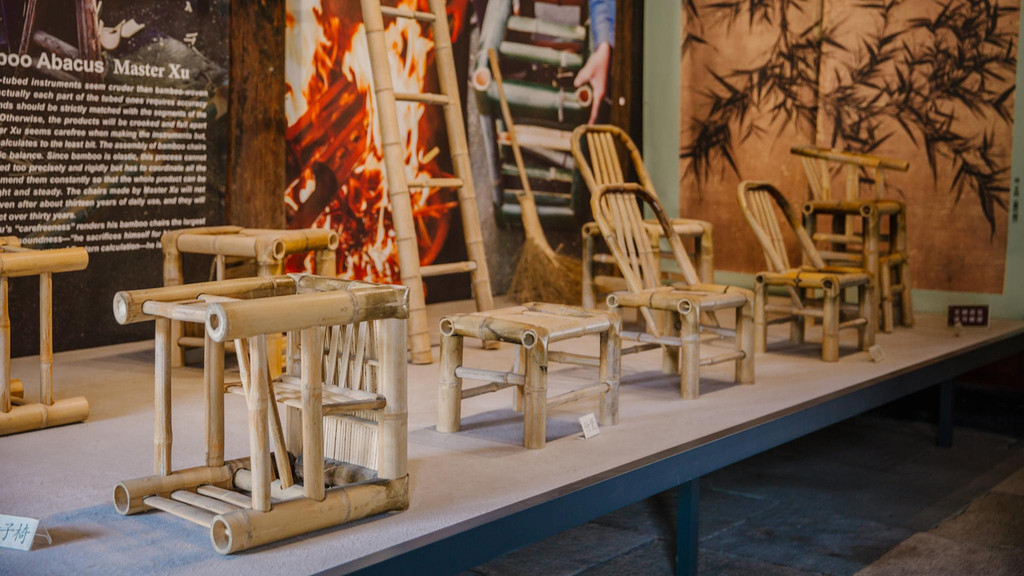 而现在,这里变成了竹工艺文化展馆,以“百姓日用”的竹器六宝:靠背椅、母子椅、扫帚、竹篓、土箕、鸡罩,这些最平常之物登堂入室,来为大家展示竹文化的历史源流、竹被赋予的民俗文化上的意义和竹工艺的本质。