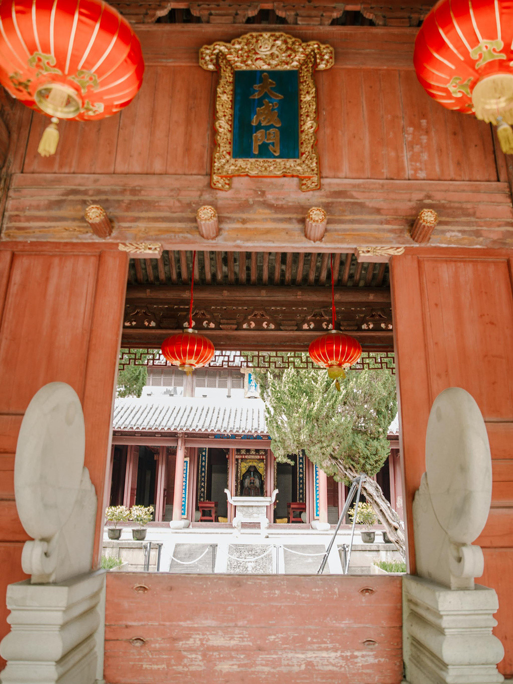 泮池后方为大成门,大成门又称仪门,是通向孔庙大成殿的正门,意喻成大器。该门制作得气宇轩昂,此门全部为木结构,外面涂上了红漆,此后的慈溪孔庙多次被毁,经过扩建后就有了如今的规模。按照简介上的说法:“慈城孔庙是目前浙东地区惟一保存最完整的学宫。”
