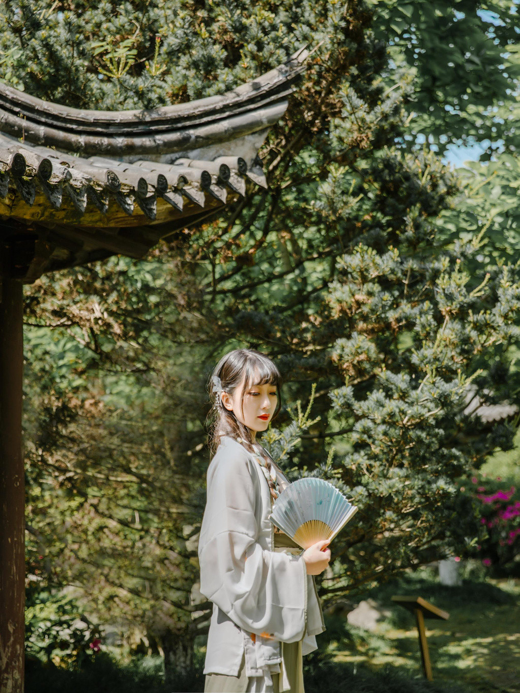 从清清堂下来,往右拐的时候正巧误入了一座后花园,浓荫蔽日,古木参天,有着说不出的古韵悠长。