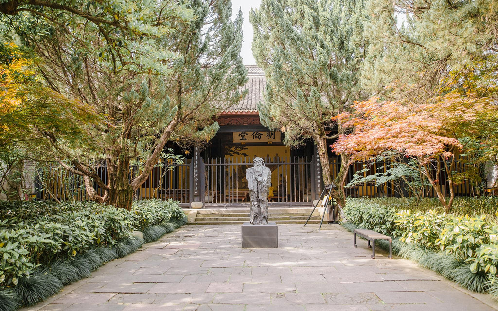 铜像背后的明伦堂则是以前上课的地方。